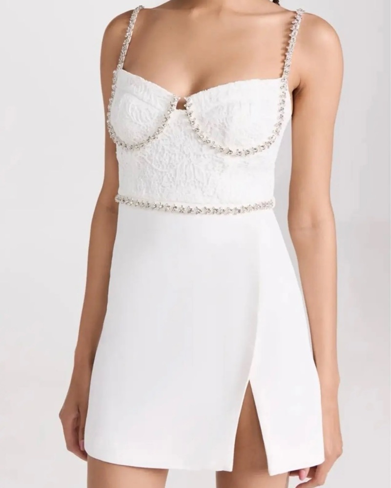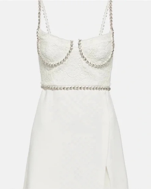 White SelfPortrait Rhinestone Mini Dress by Self Portrait - Pickle