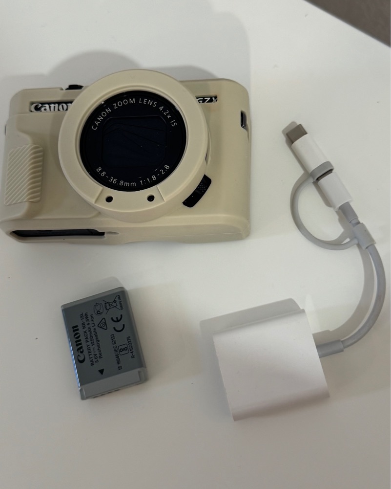 Camera, strap, case, battery + charger.