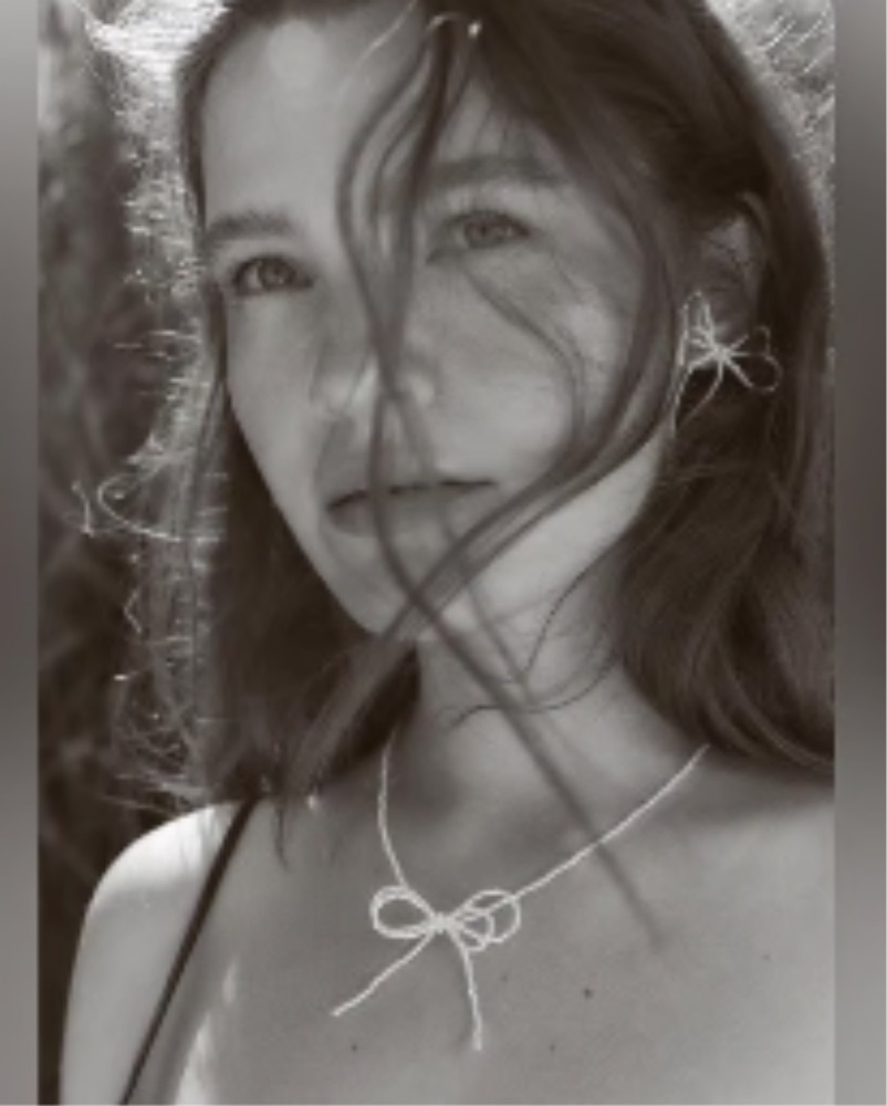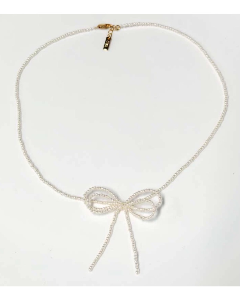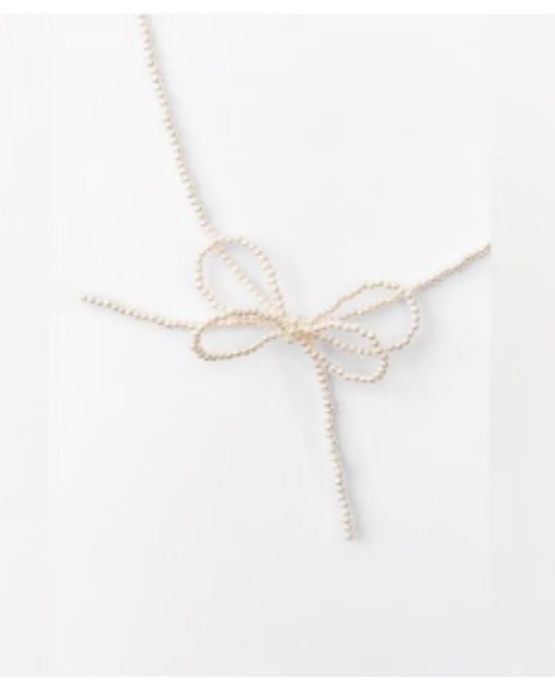 Delicate Zara necklace with faux pearl detailing and double bow pendant. Feminine, minimal and easy to layer or wear on its own. A subtle statement piece that elevates both everyday and evening looks.