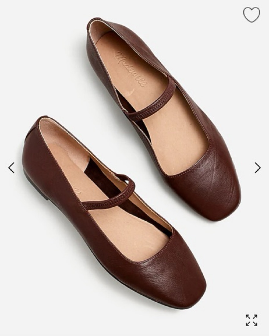 Greta ballet flat from Madewell in the color chocolate raisin (also known as brown lol). Unbelievably comfortable! Last photo is to show them with jeans and is not the correct color.