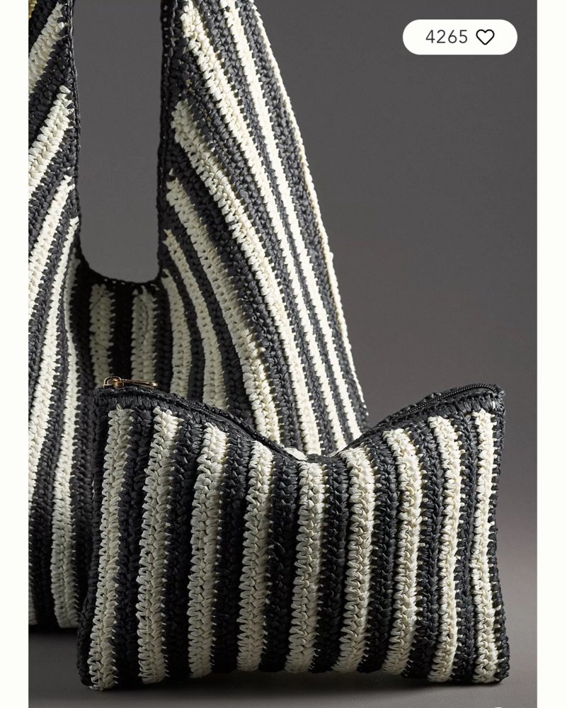 This stylish and versatile crochet tote bag is perfect for everyday use or as a beach bag. The bold black and white striped pattern adds a chic touch to your look.
