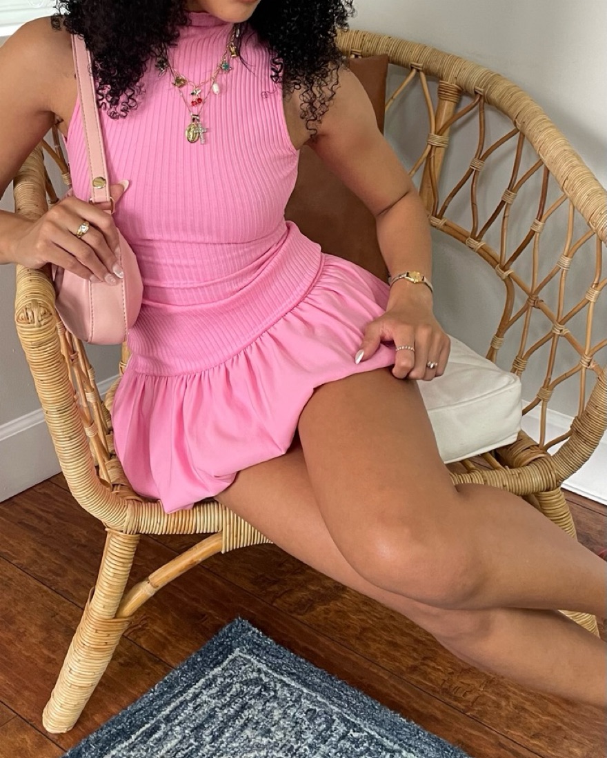 Sleeveless, pink balloon dress from Zara! Soft fabric and stretchy, comfortable fit perfect for the summer!
