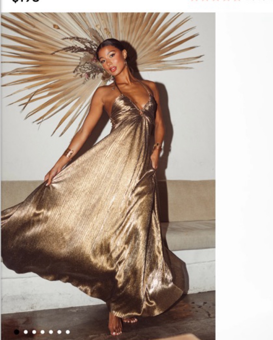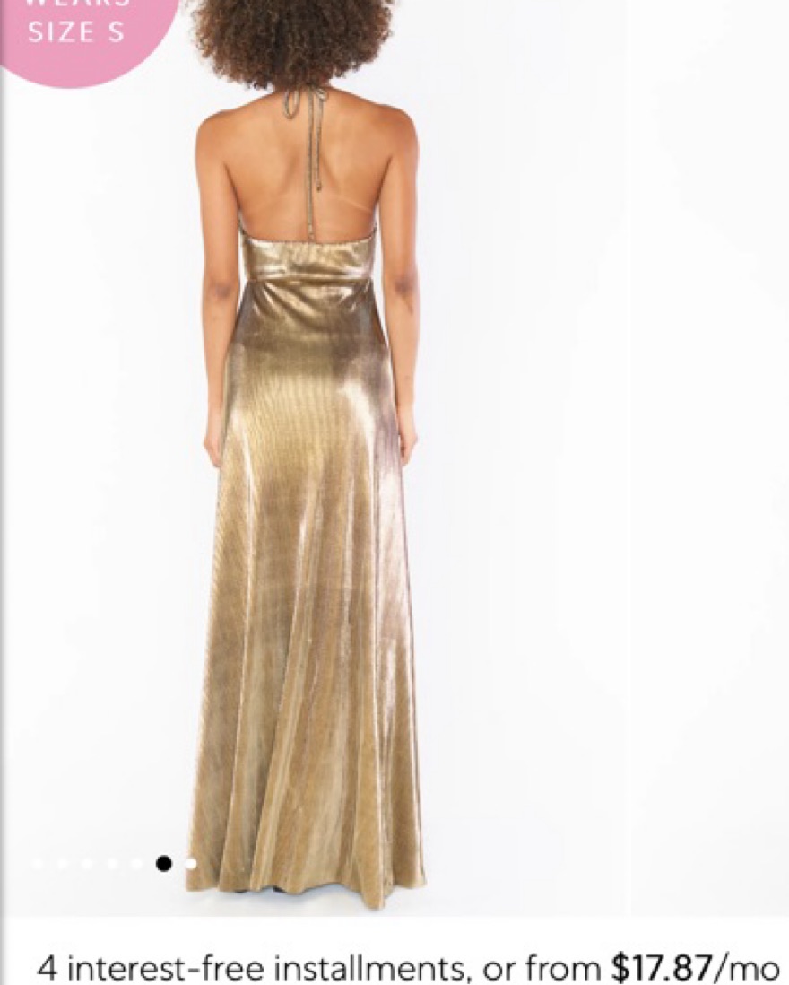 Such a flattering gold dress! Perfect for a winter formal! Worn twice and in great condition