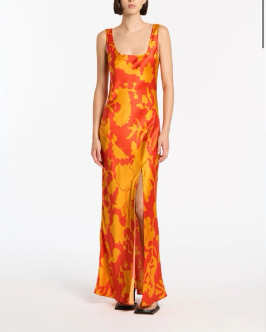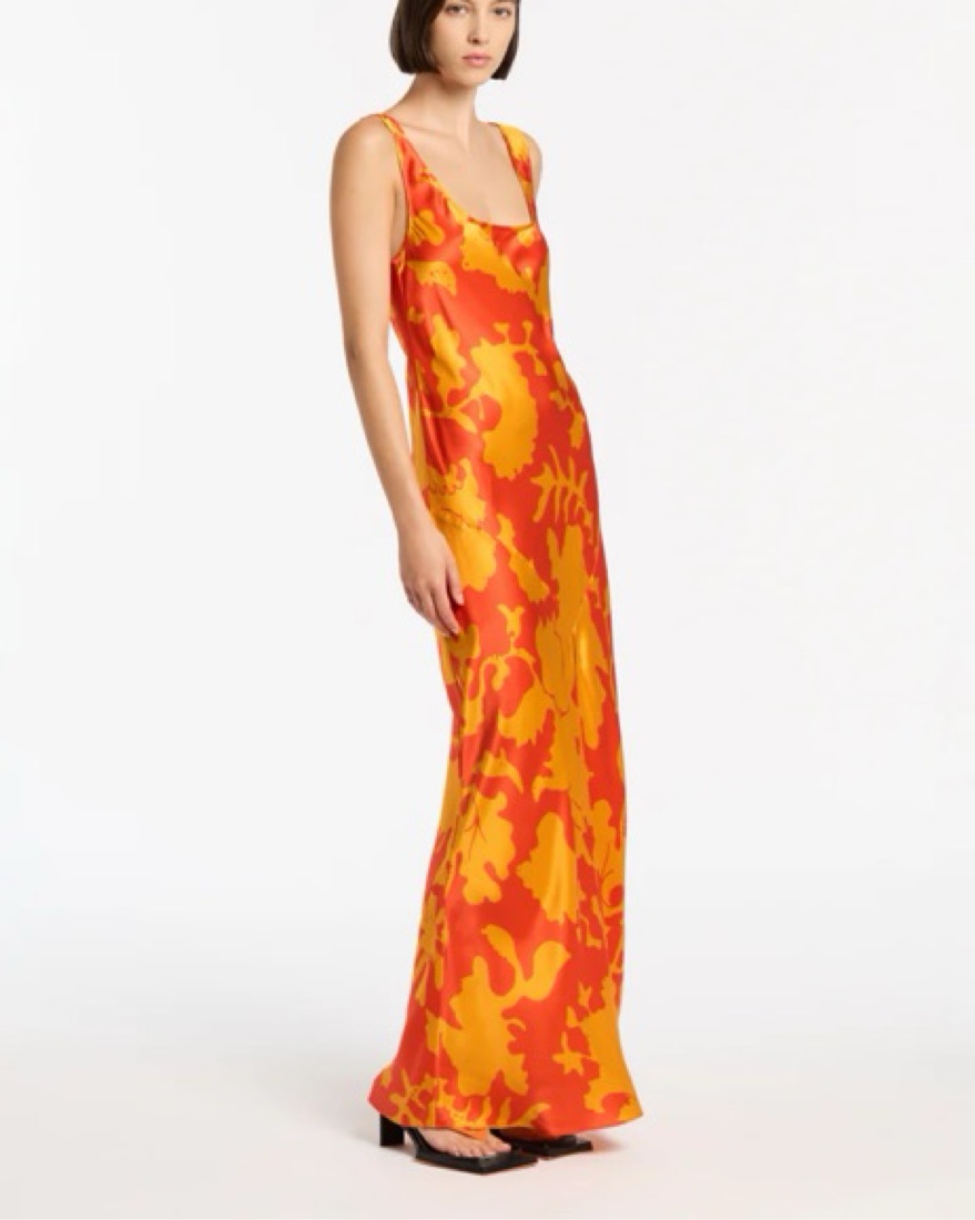 Size 4 The Armel Bias Maxi Dress is crafted from a silk fabric in the SIR. exclusive Armel print, an abstract print in vibrant orange tones. Offering a relaxed fit, featuring a scooped neckline and front split. Pair this slip dress with heels for an elevated look. Exclusive to Mytheresa and SIR.