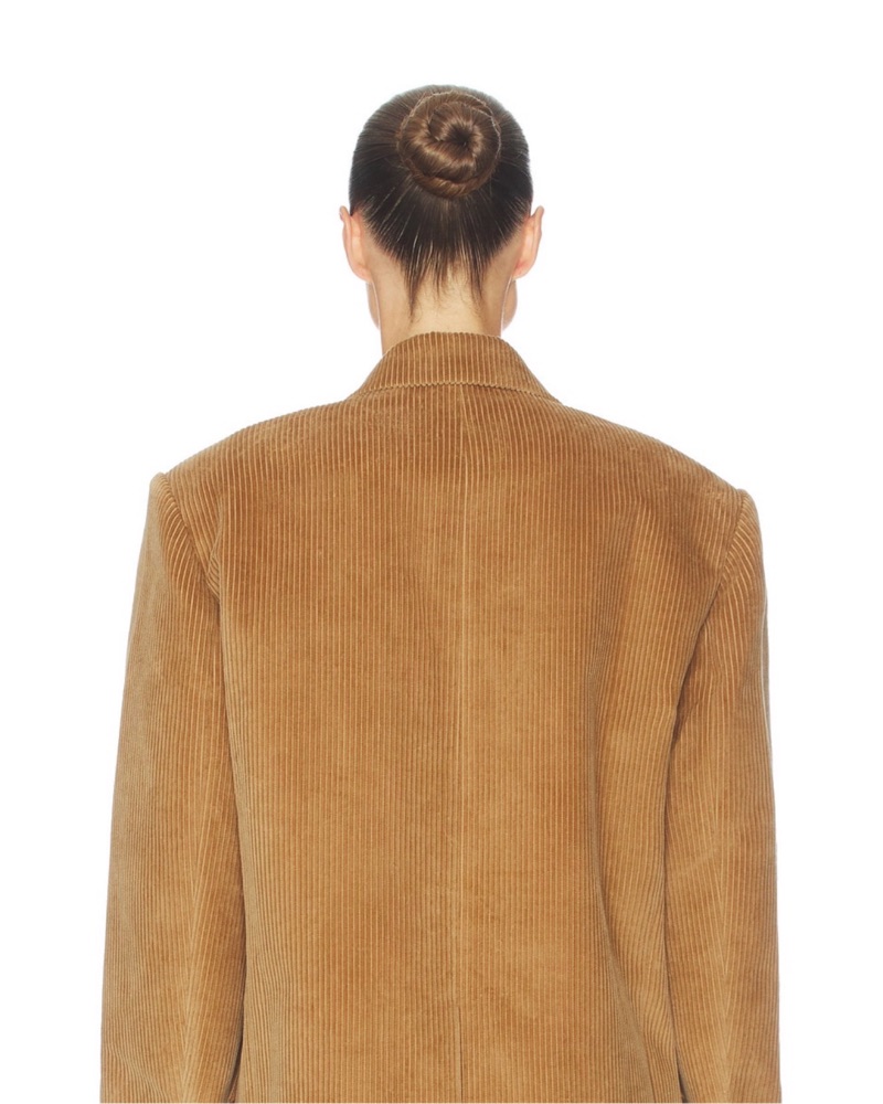 This luxurious corduroy coat is perfect for keeping warm and stylish on chilly days. The cozy hood and tailored silhouette create a sophisticated and fashion-forward look.