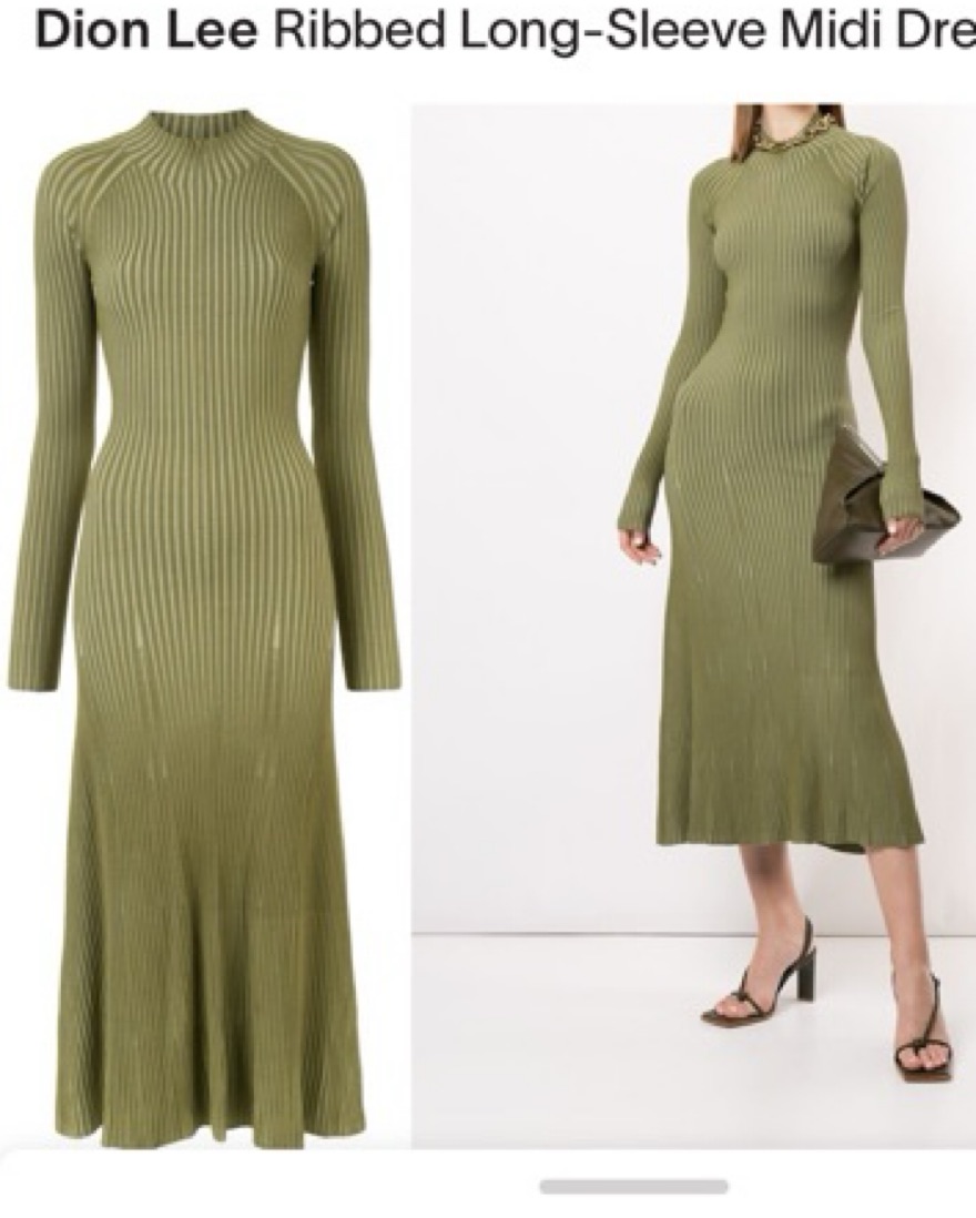 Dion Lee Ribbed Long-Sleeve Midi Dress by Dion Lee - Pickle