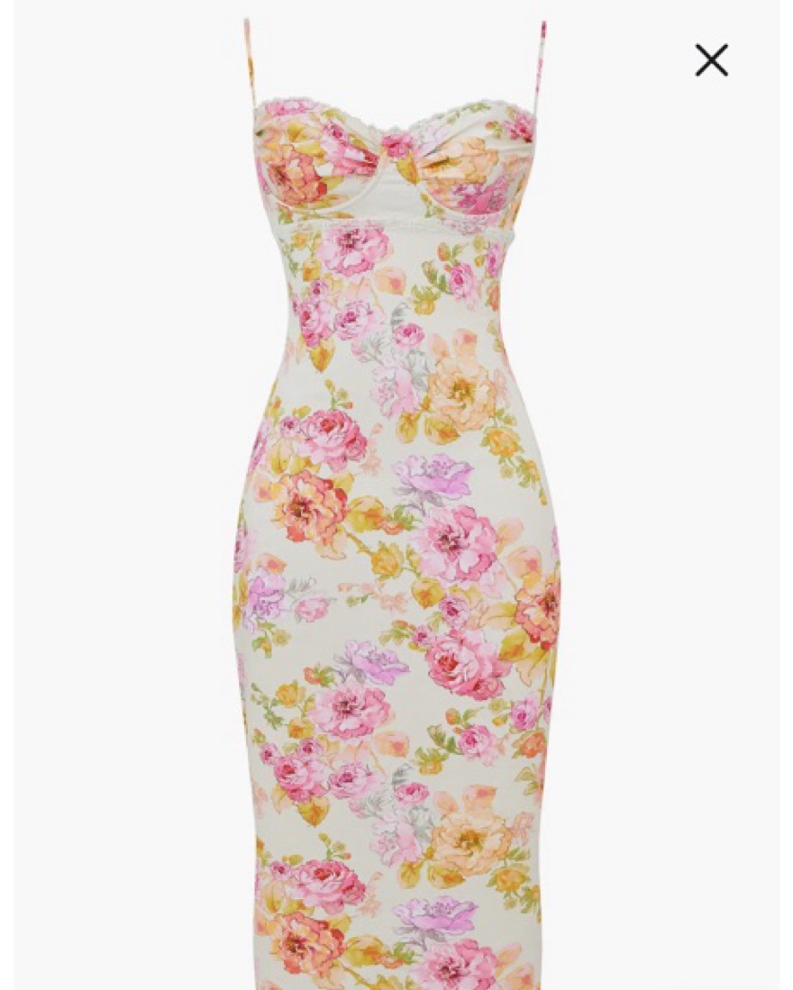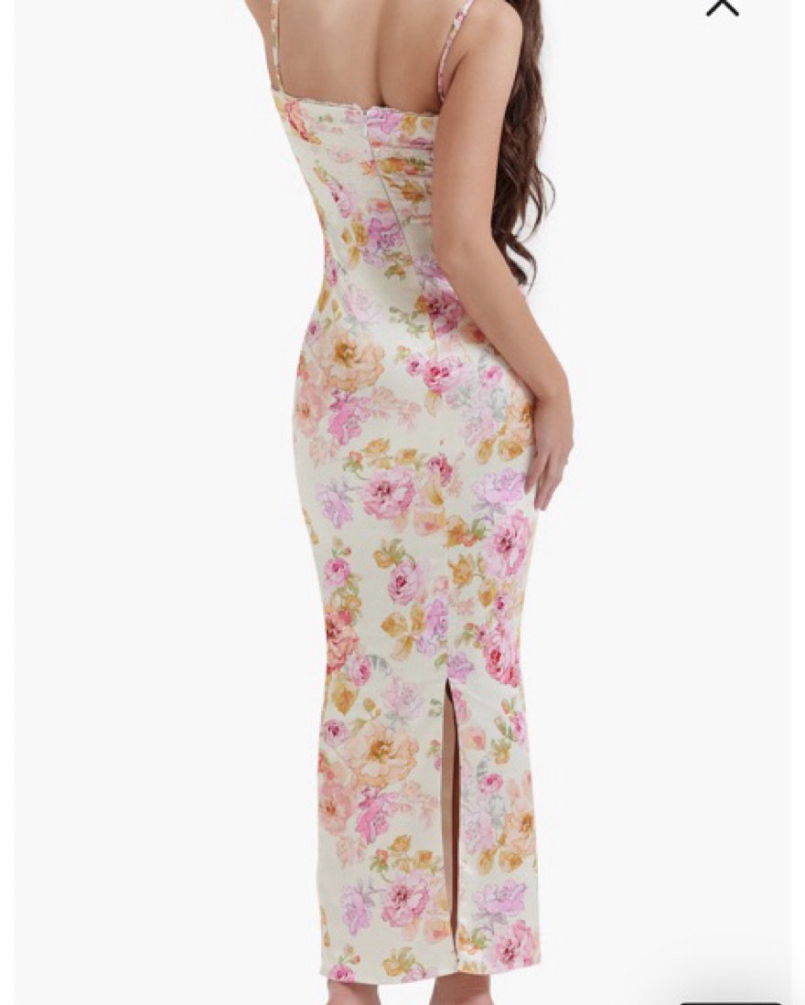 Josefina Floral Bustier Bodice Stretch Satin Body-Con Dress. SIZE: XS (A/C)