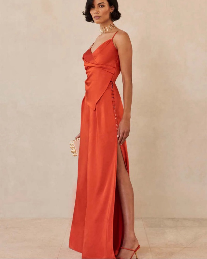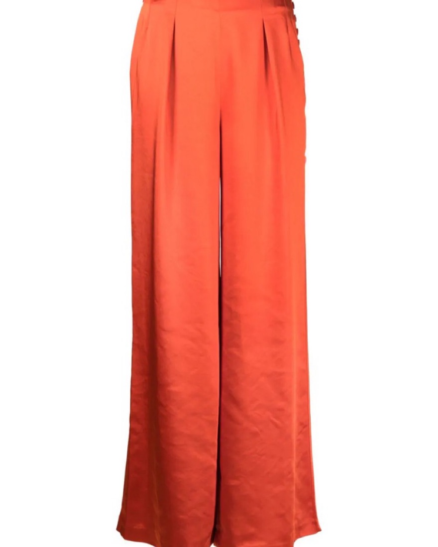 Satin palazzo pants in the prettiest pumpkin orange color. Perfect for fall! They look so good in photos.