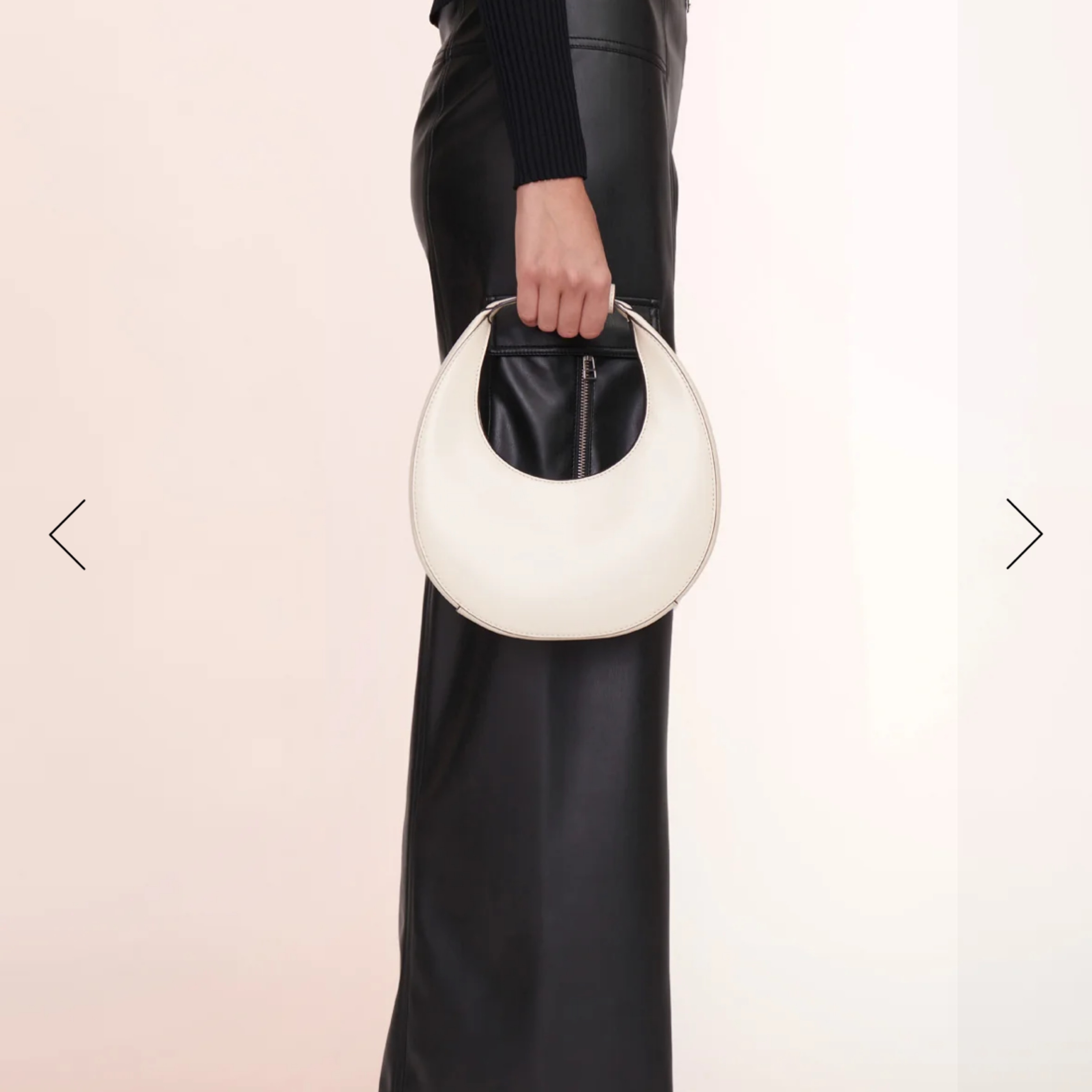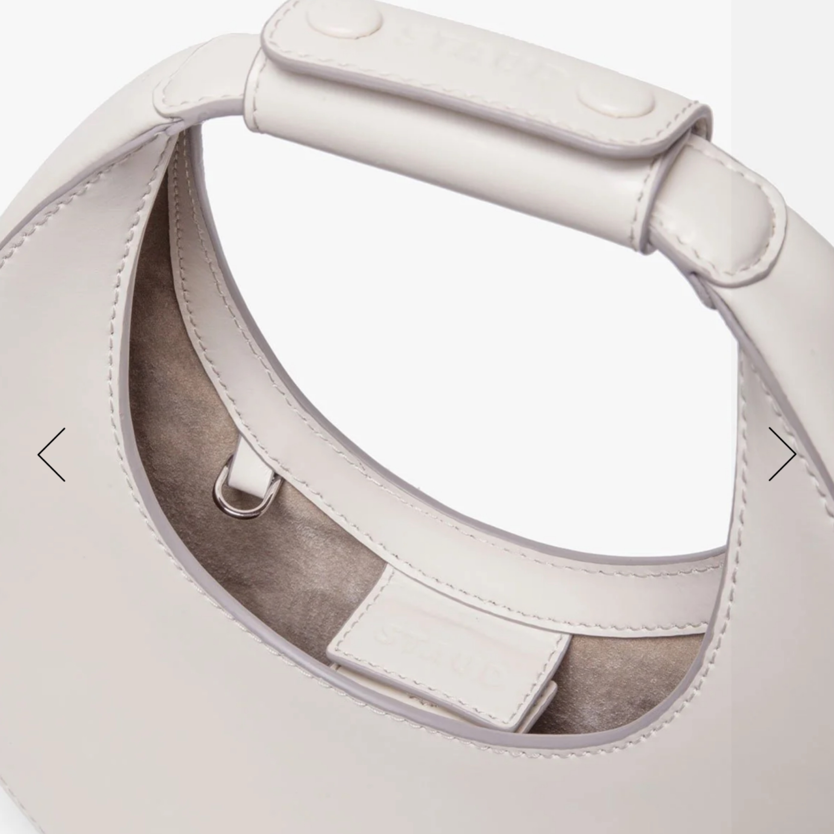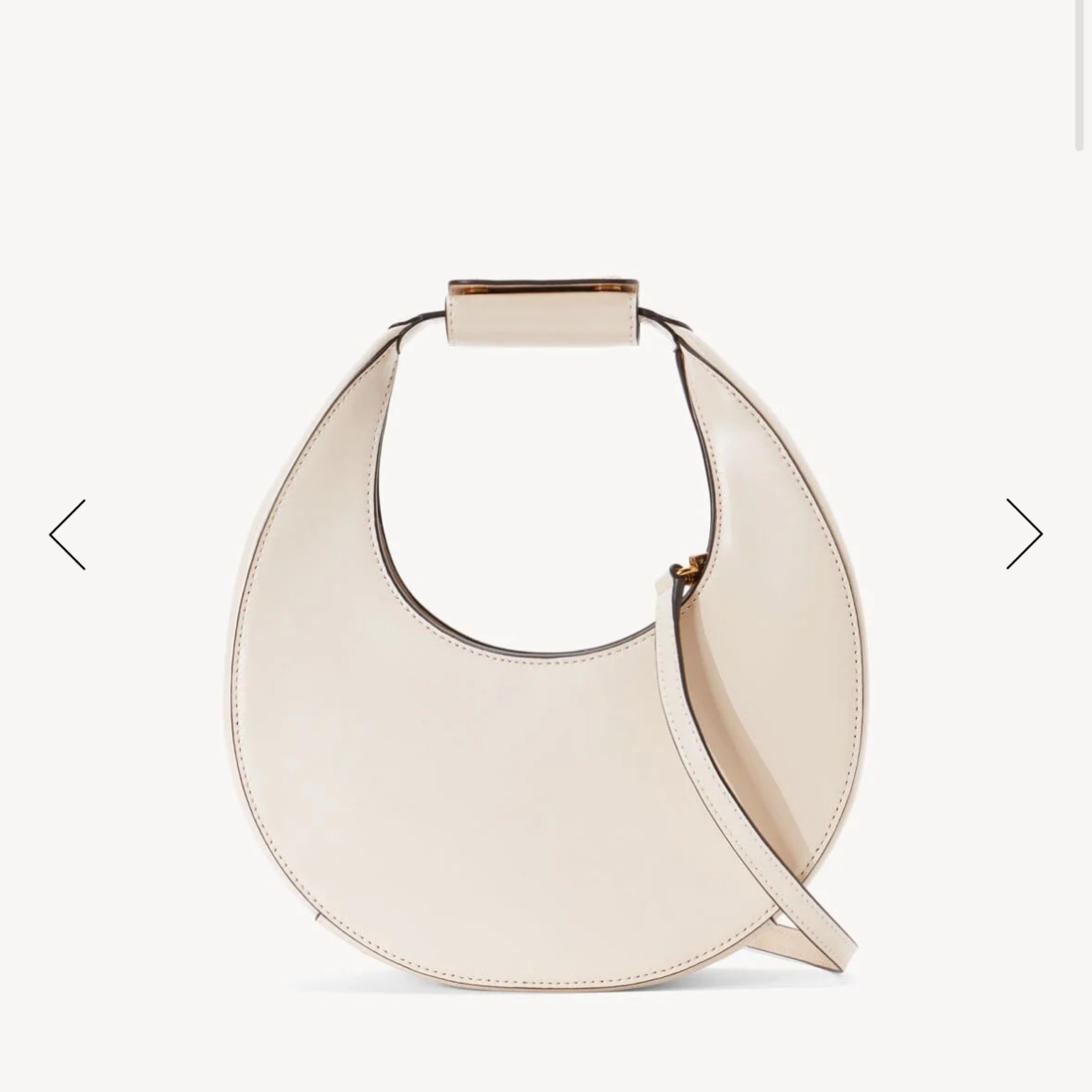 Staud mini moon bag in white! Can come with or without detachable strap. Such a fun purse for the summer to dress up or down. Fits phone, wallet, keys, and some makeup.