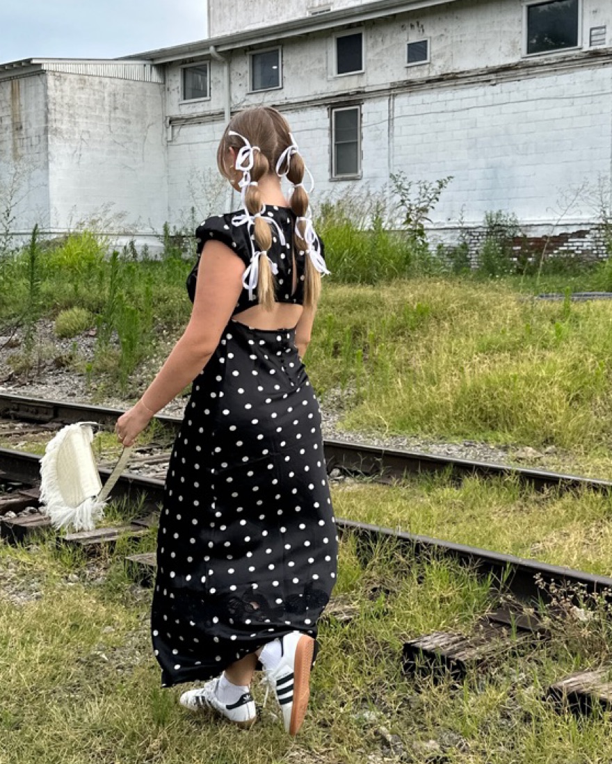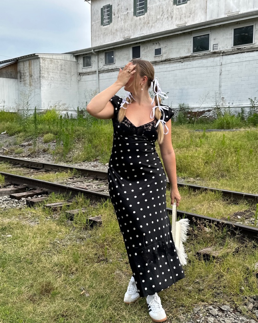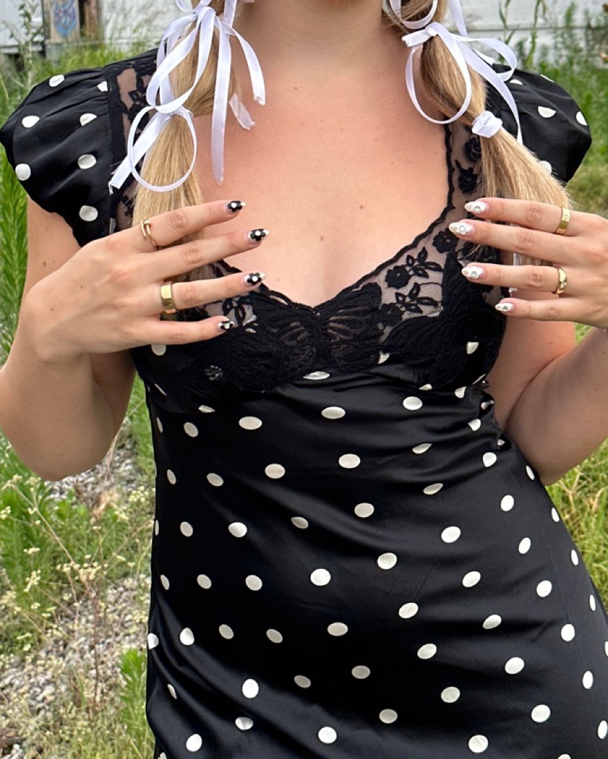 Free People Butterfly Babe Maxi Dress in Black and White. Gorgeous long polka dot dress with butterfly lace detailing, tasteful open back, and dainty buttons,! Also available to rent in the off white “tea combo” and navy “classic combo” colorways. Sold out everywhere! Only worn twice.
