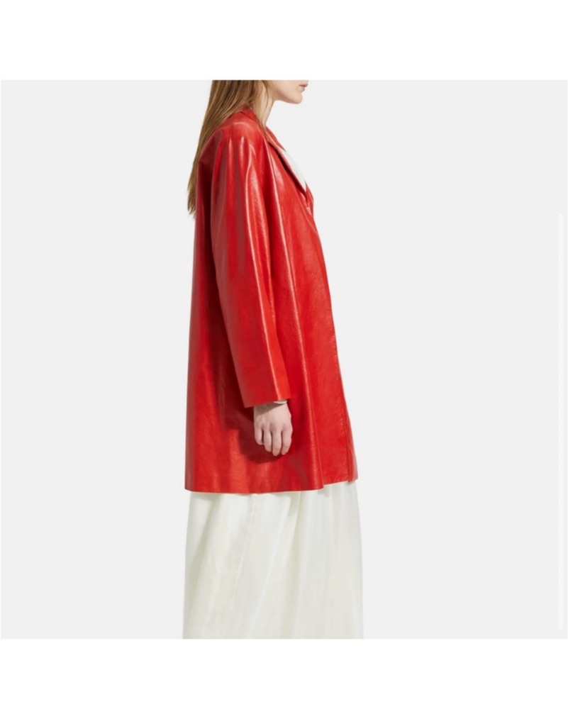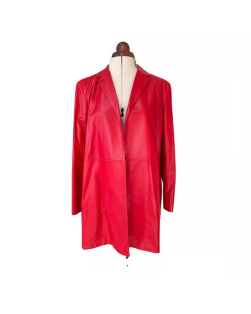 This bold, eye-catching red faux leather jacket is perfect for making a statement. Pair it with a chic all-black ensemble for a night out or throw it over a casual tee and jeans for a stylish daytime look.