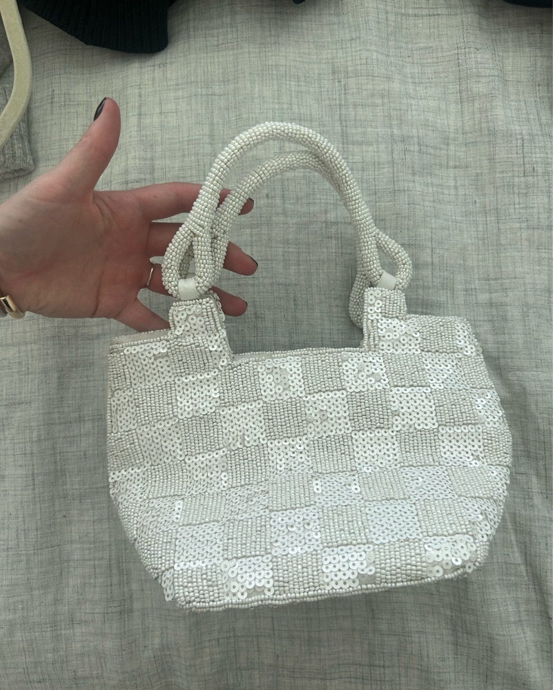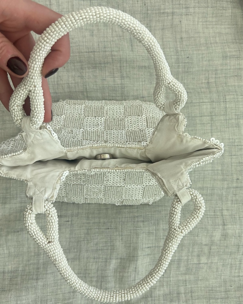 White Sequin & Baded Mini Purse