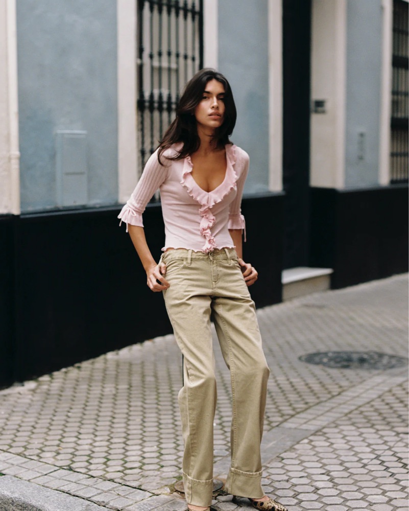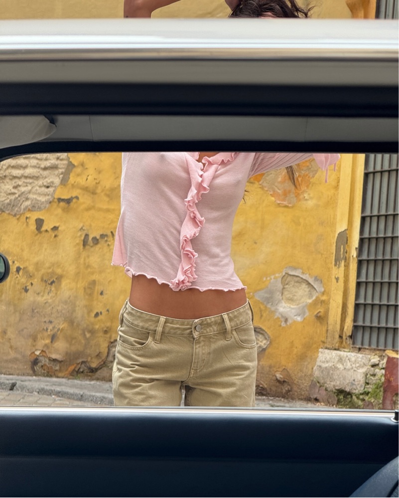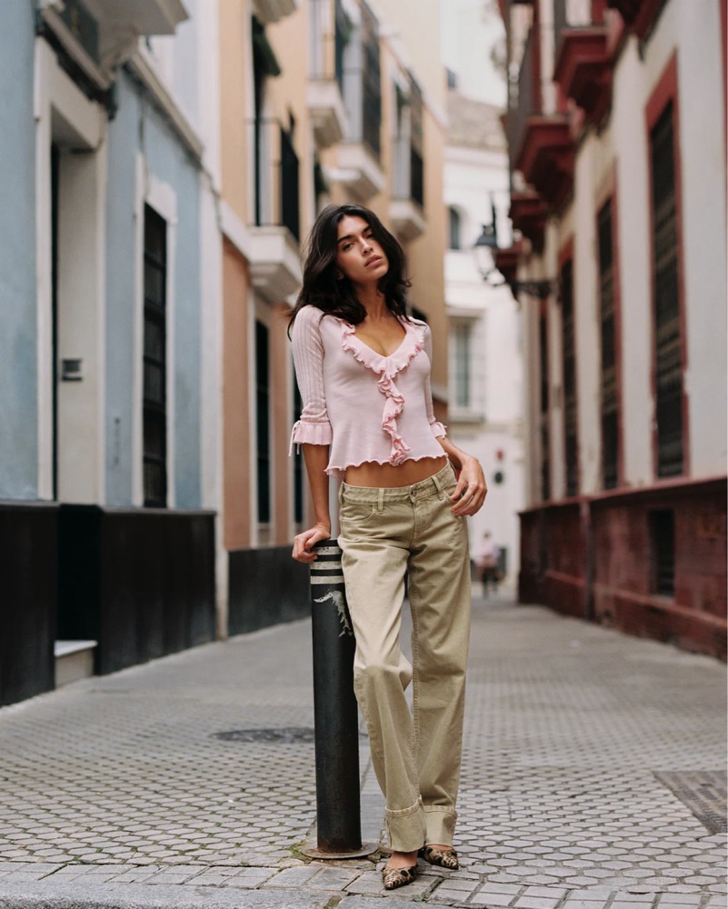Ps: When worn with a skin tone bra, it’s not see thru! The Emily Top is a knitted top featuring 3/4 length sleeves, a ruffle-trim neckline, rib detailing at the sleeves, and ruffle cuffs with tie detail. Tags: going out, nyc, cool girl, date night