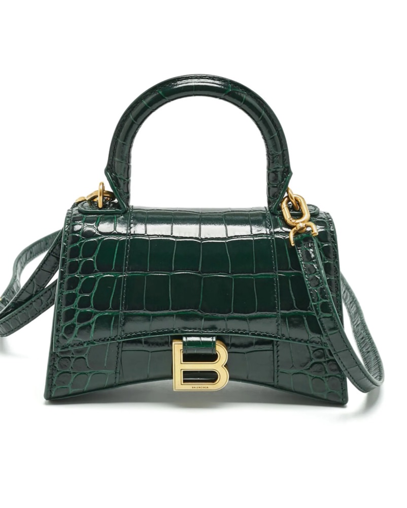 Authentic balenciaga hourglass croc-embossed leather mini bag