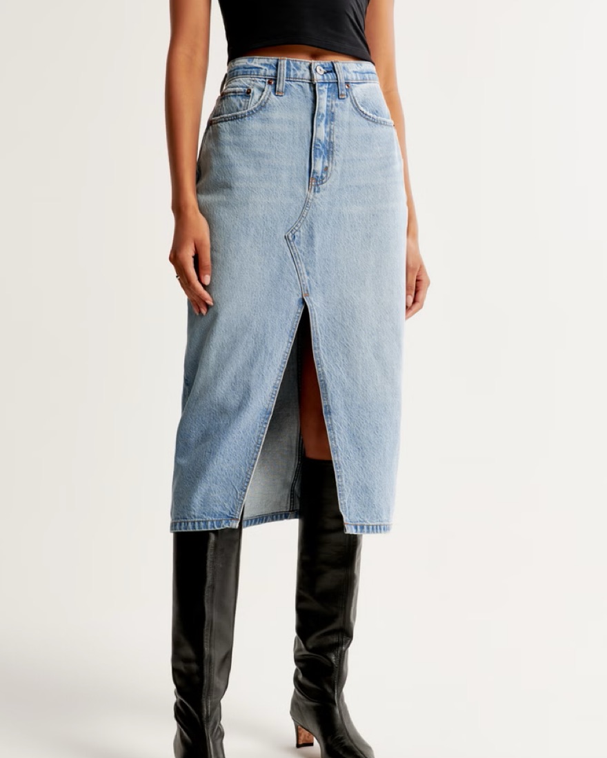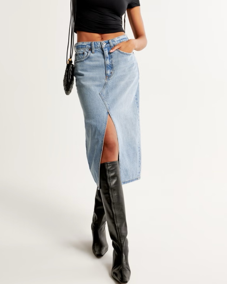 Abercrombie Denim Midi Skirt by Abercrombie and Fitch - Pickle