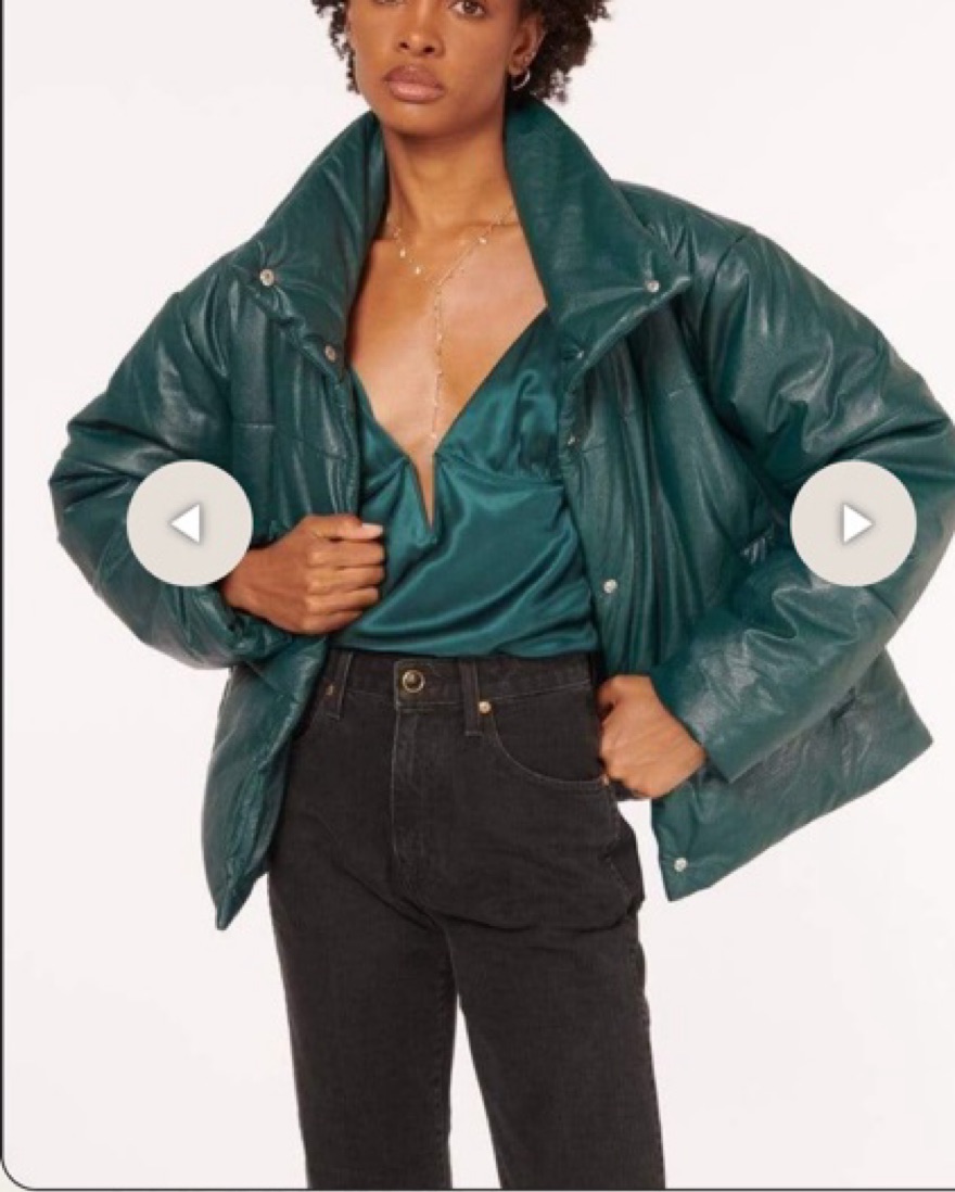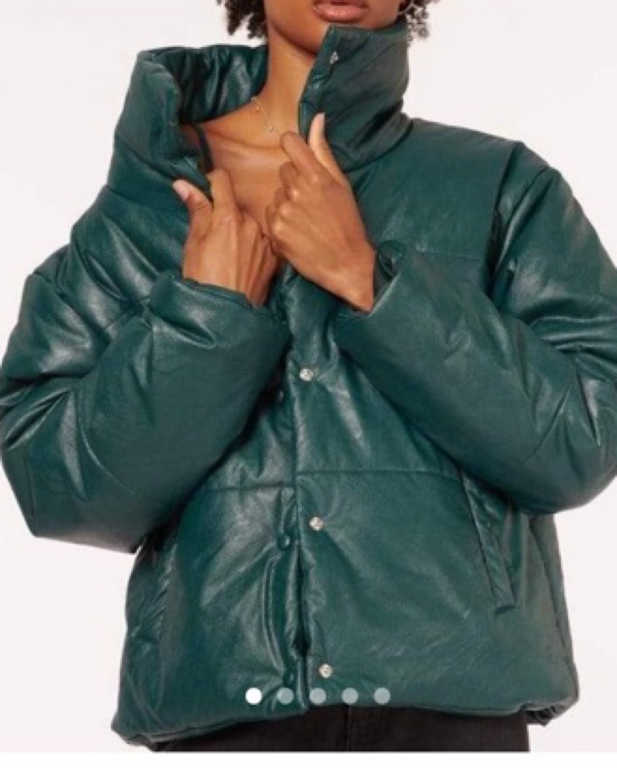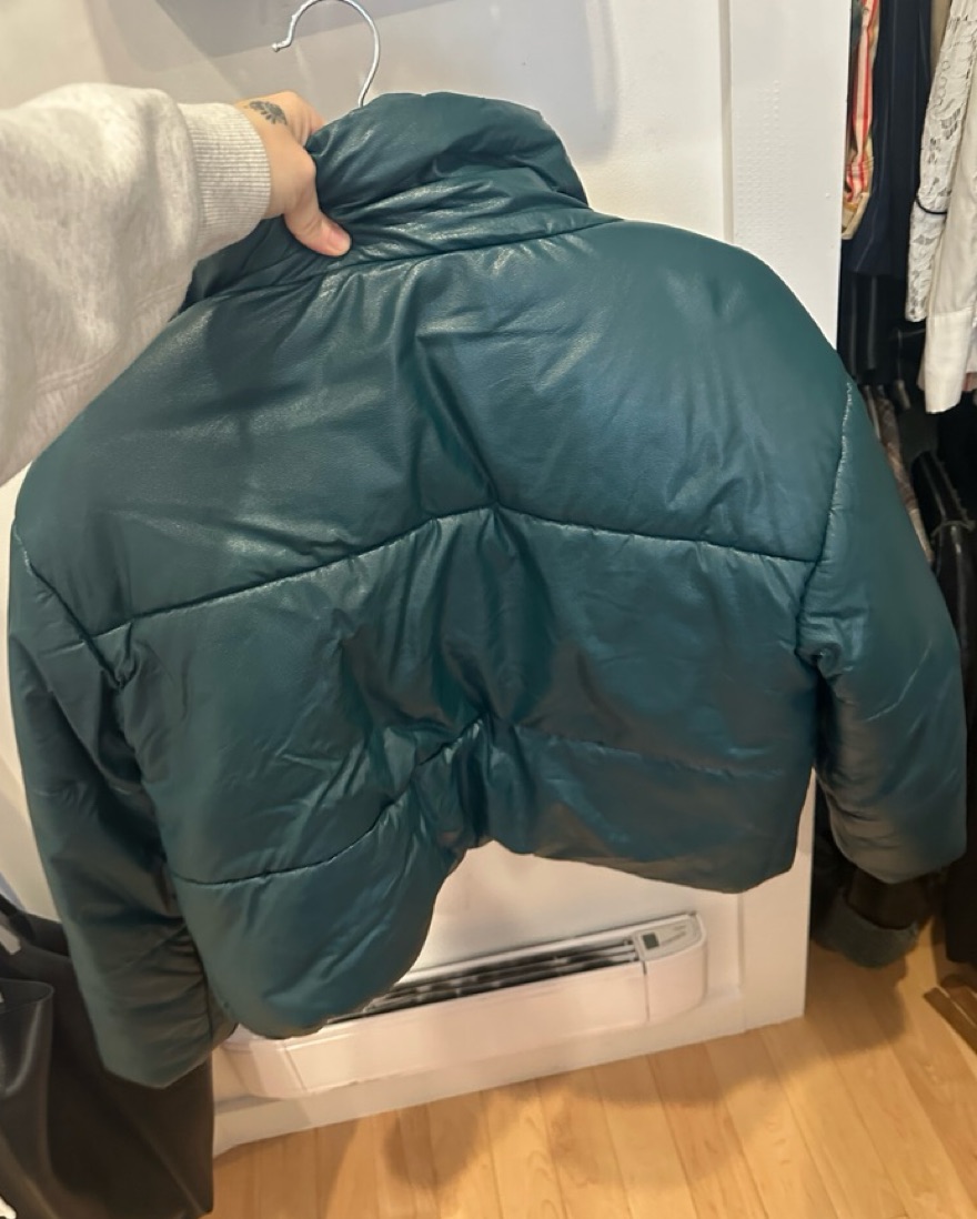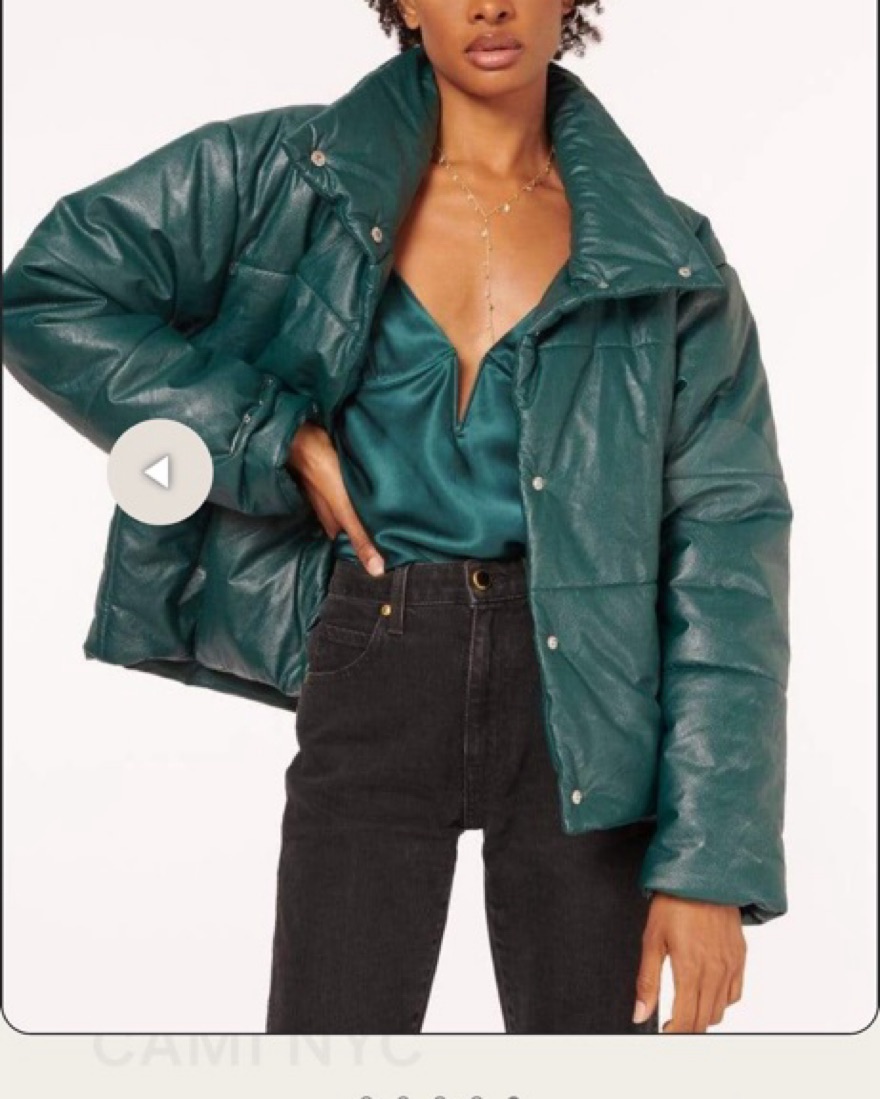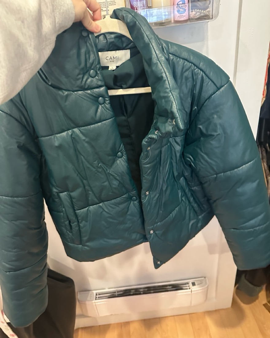 Cami NYC green shiny vegan leather cropped puffer jacket
