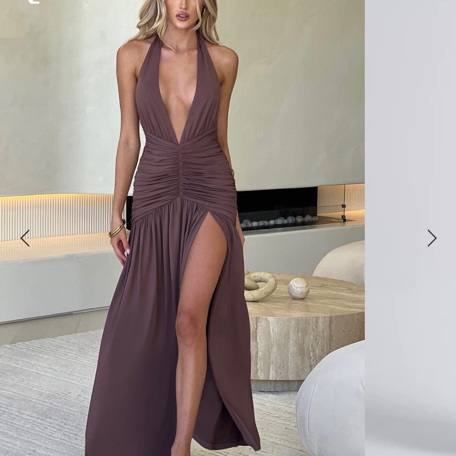 Plunge halter neckline.