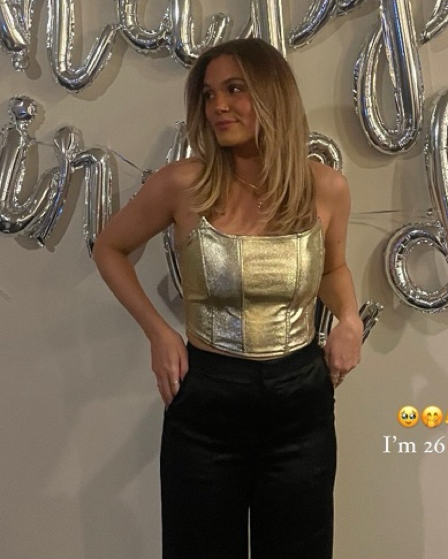 Gold metallic corset style top - ties in the back and super flattering - adjustable and so cute for birthday, going out, vacation, date night, etc. would fit S - M due to adjustable tie