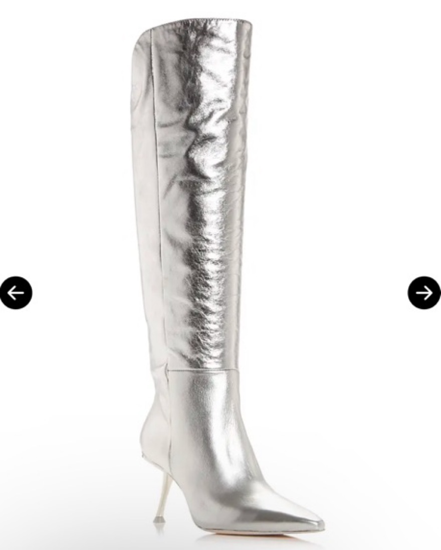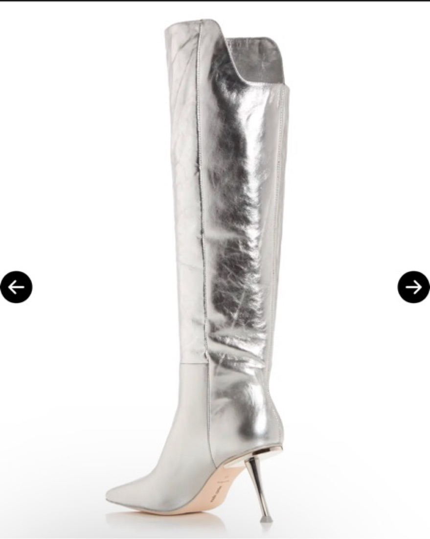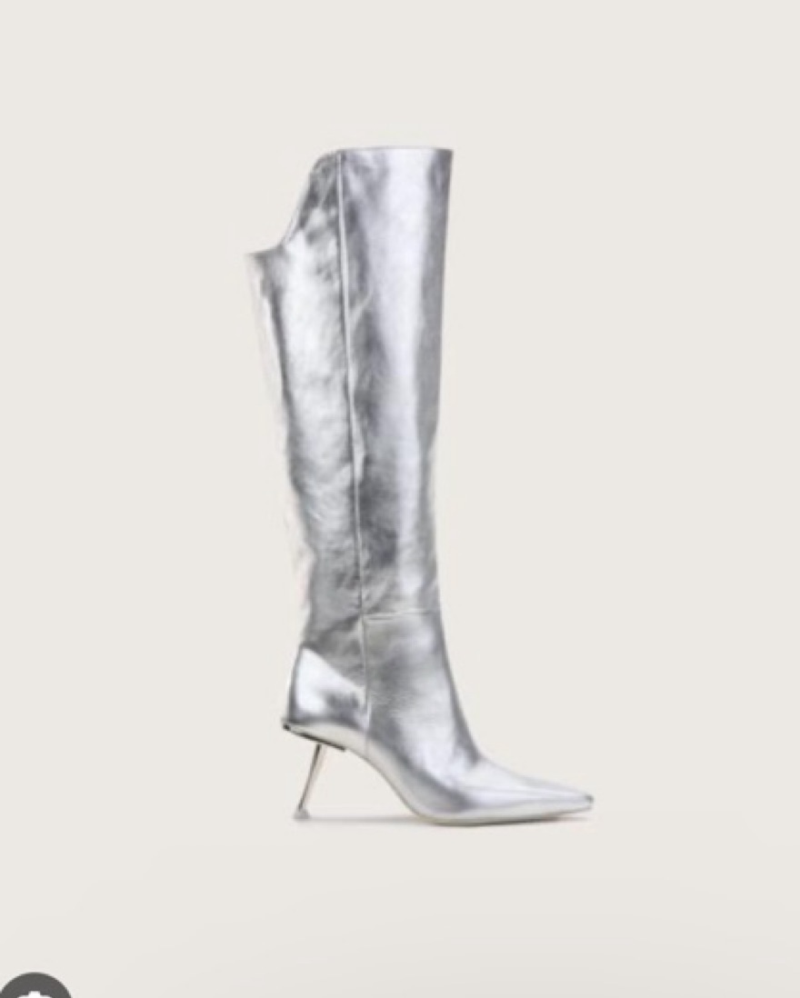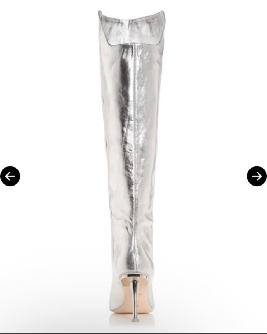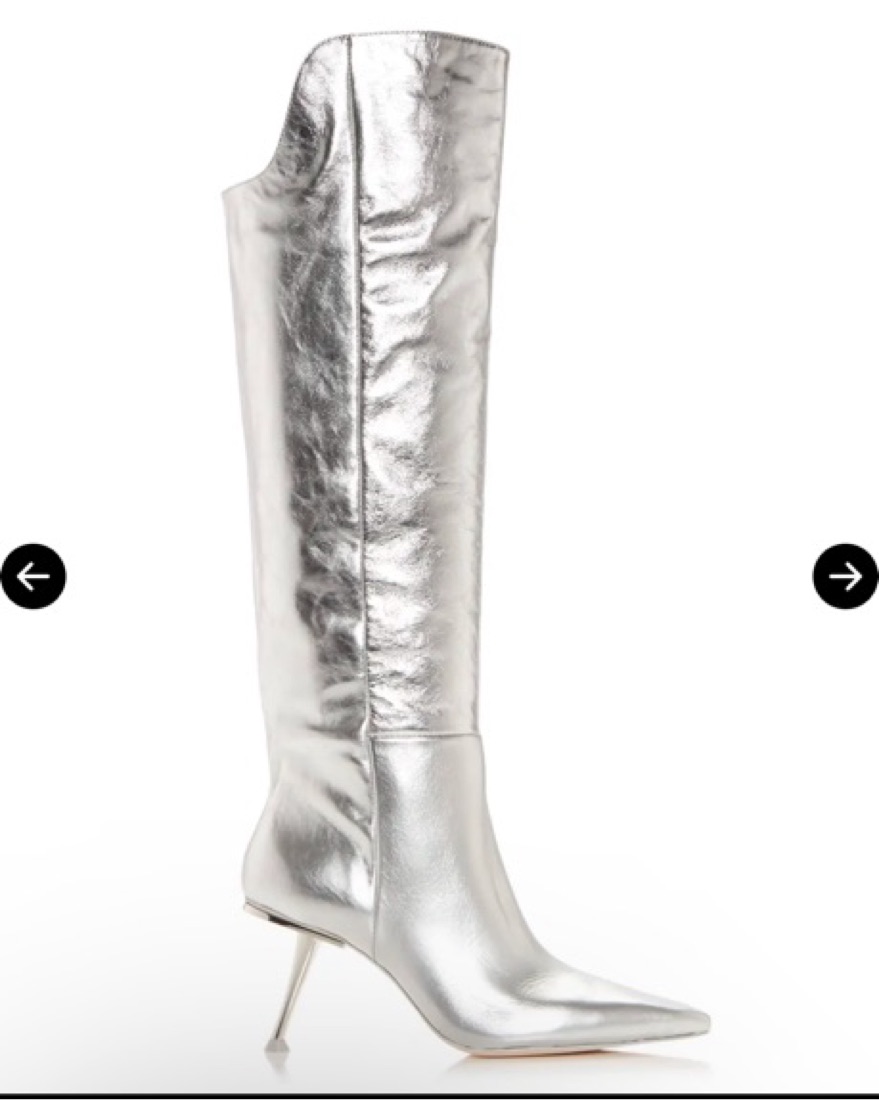 Never worn - These stunning silver to-the-knee metallic boots will elevate any outfit. Pair them with a mini dress or sleek jumpsuit for a bold, fashionable look. Size 36.5