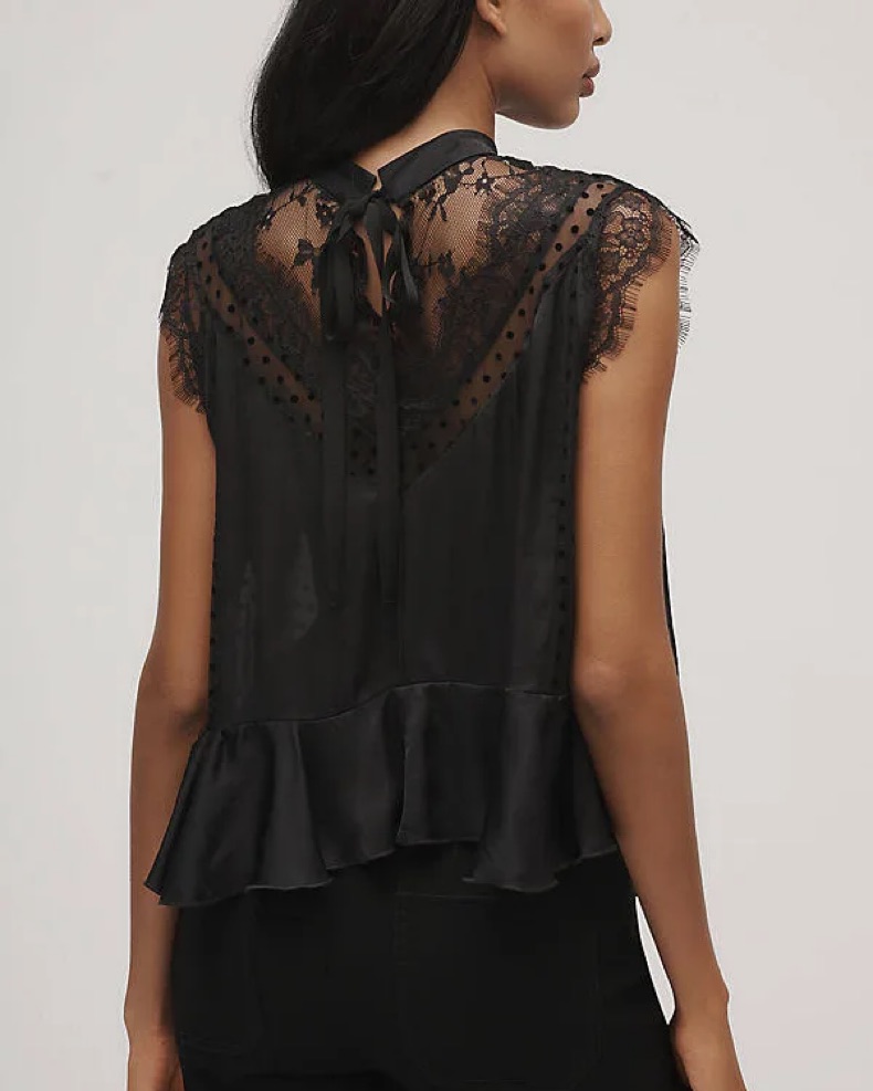 Anthropology Sheer Lace Peplum Top