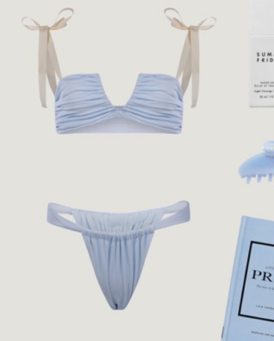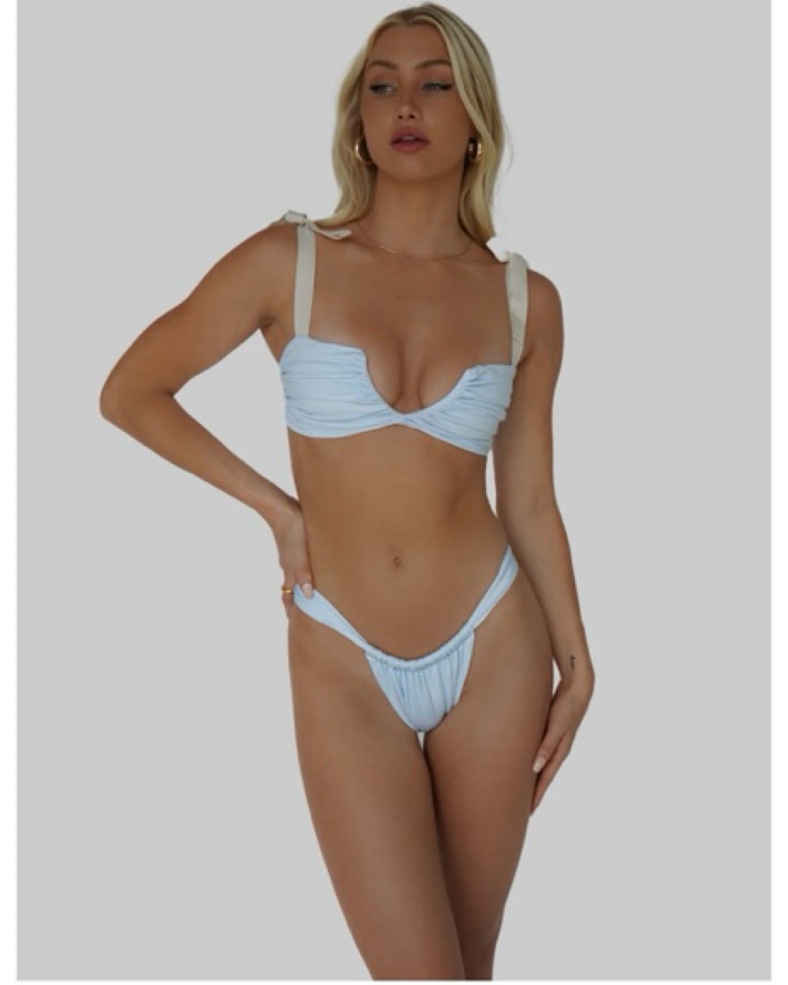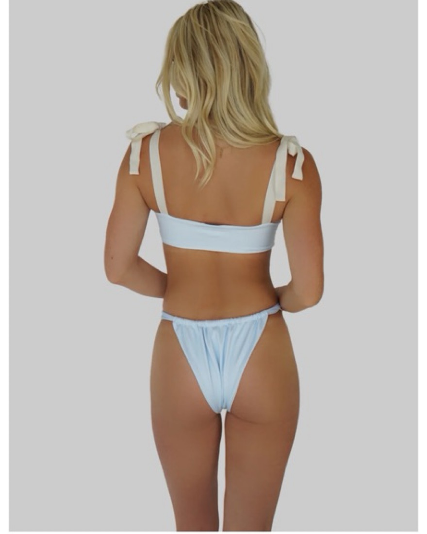 Style is Cute Ana de Bretana / Tropical Blue. This includes the top and bottom. Top is a size medium, fits true to size. Bottom is size small, runs small. Adjustable ties straps for the top. Please return in original condition, no fake tan. HAND WASH ONLY.
