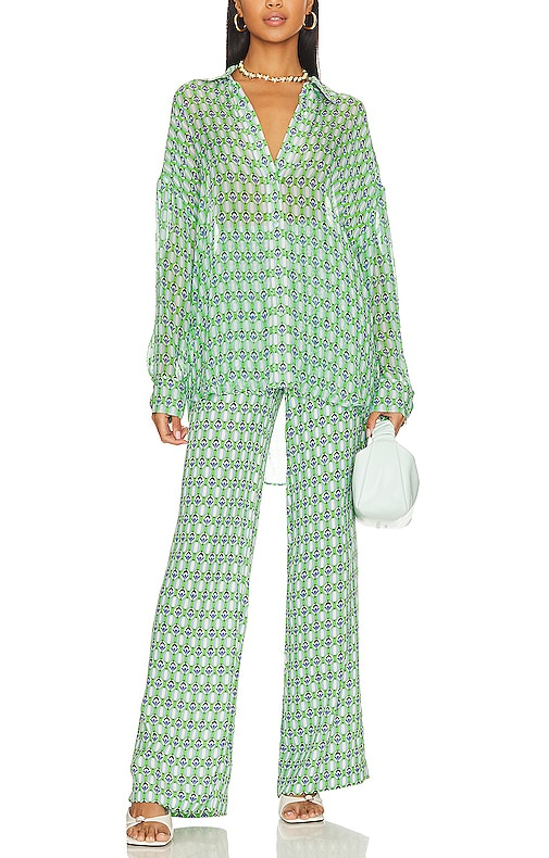 The Friday Shirt In Retro Mosaic Print by Favorite Daughter - Pickle