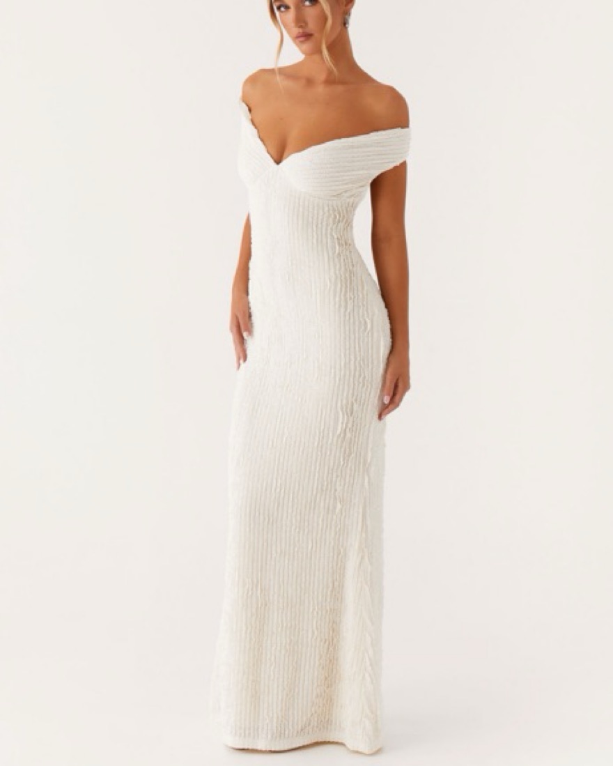 The Chantelle Maxi Dress exudes elegance with its off-shoulder neckline and beautifully ruched underbust design. This flowing silhouette flatters your figure while allowing for comfortable movement, making it perfect for sunset gatherings or special nights out.