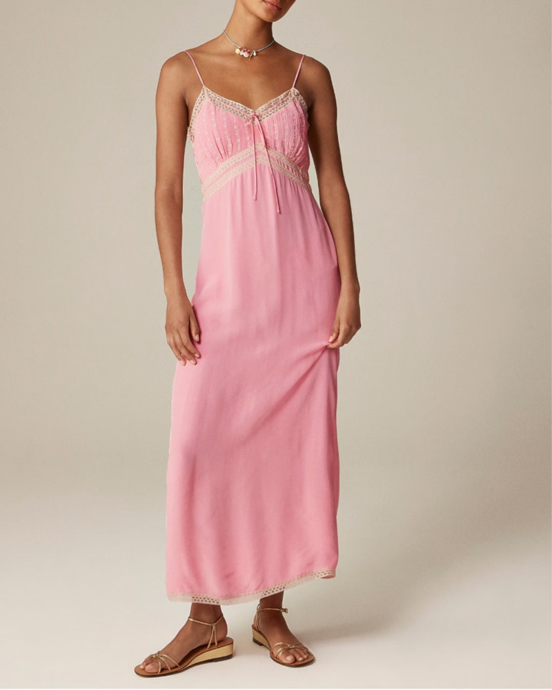 Jcrew Pintuck Lace Trim Slip Dress by J Crew - Pickle