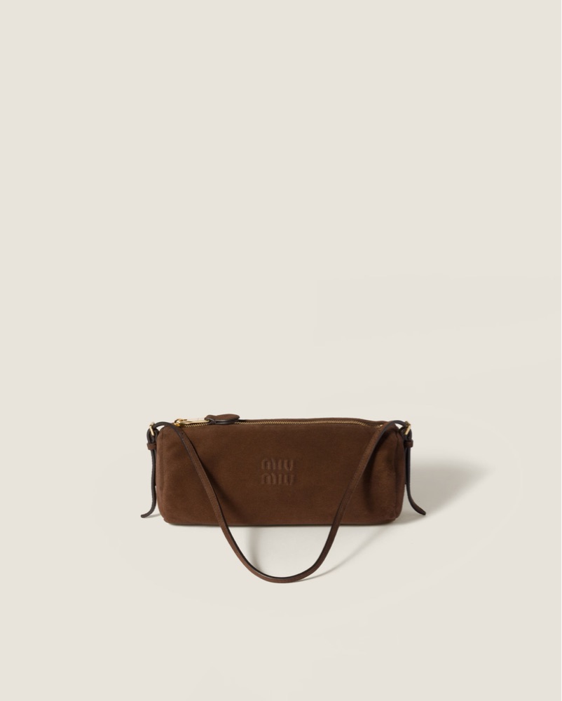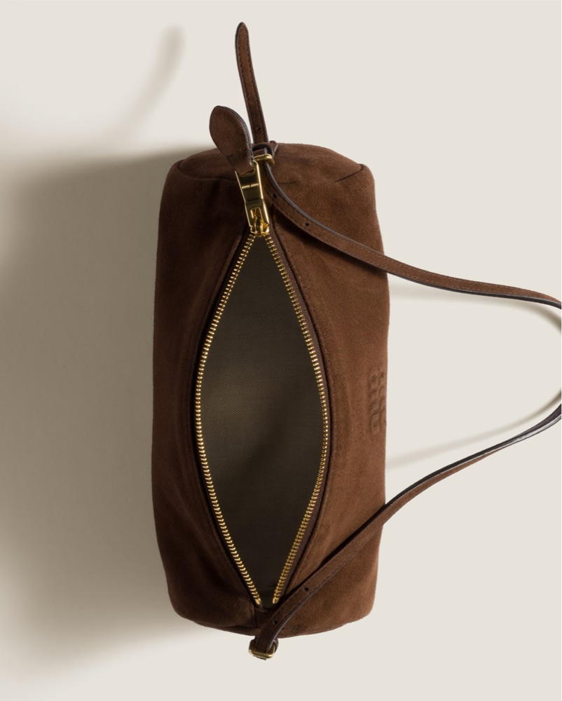 Cocoa brown 🤎 NEW. A compact and functional design characterizes this soft suede pouch. The shoulder strap adds a practical detail while the lettering logo completes the design with an iconic note.