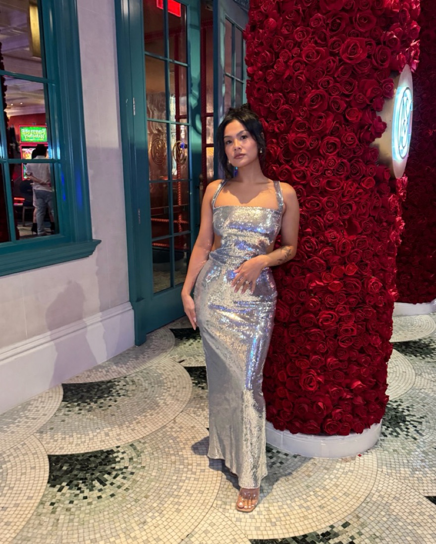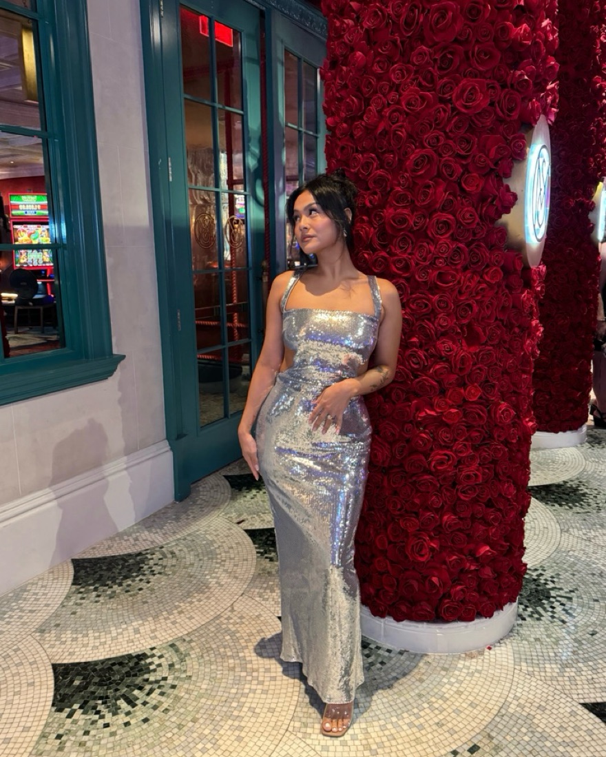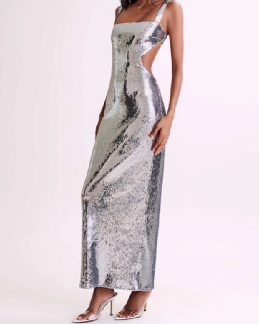 Sequin Cut Out Maxi Dress in Silver