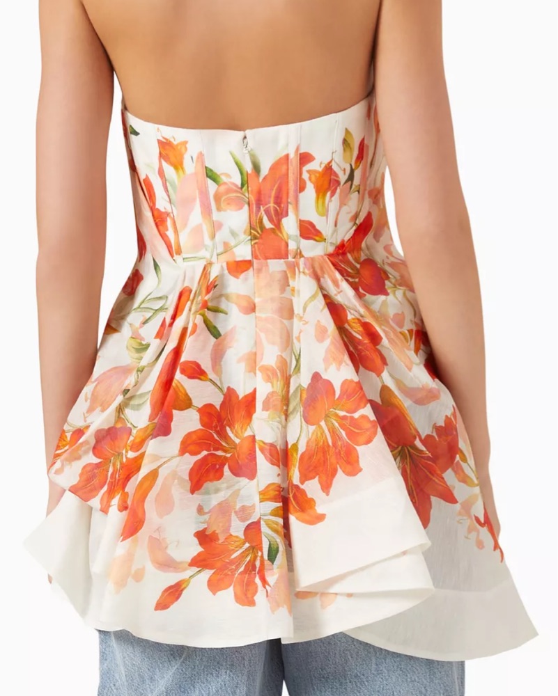 This stunning floral top is perfect for a summer garden party or outdoor wedding. The vibrant, blooming floral pattern and peplum silhouette create a chic, feminine look.