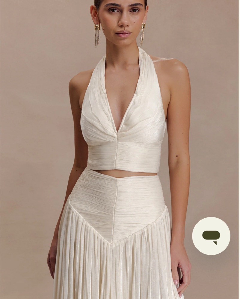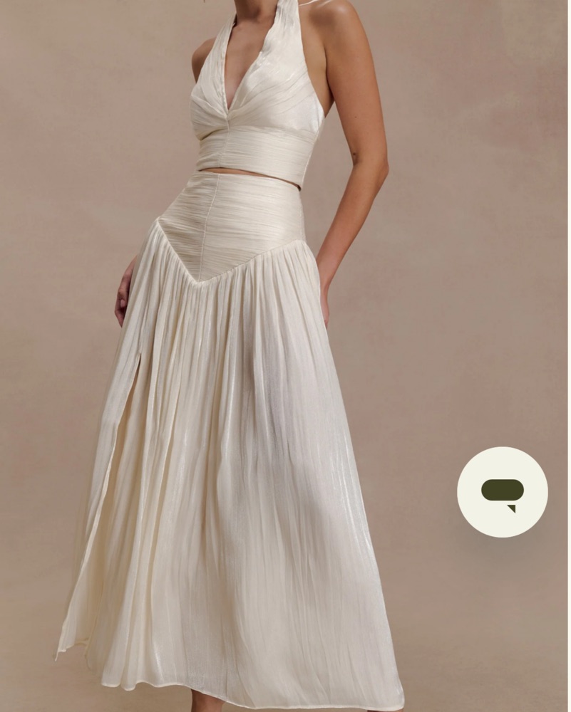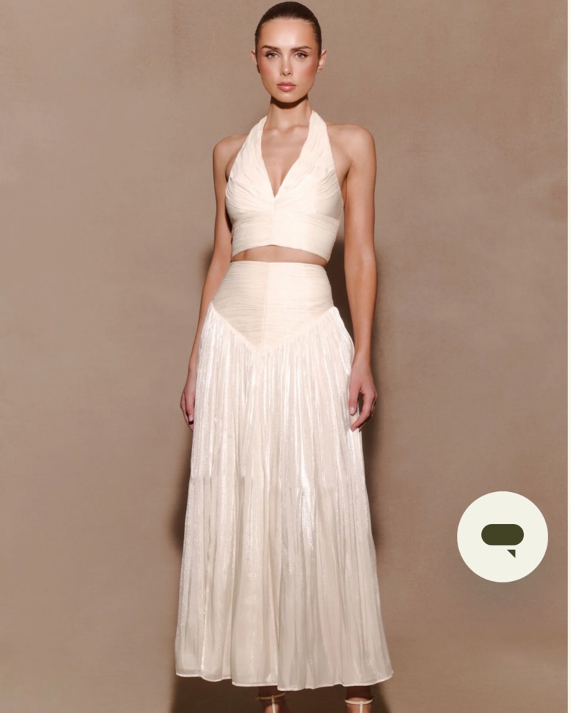 The MAKENA Gathered V Neck Top and Skirt set in opal redefines modern femininity through precise tailoring & fluid texture. Feat. deep V-neckline w/ internal wiring for structure, it’s enhanced w/ gathered detailing along every seam to create dimension & movement. Bride, bach, formal, resort, date
