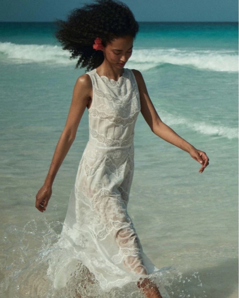 Size medium in color salt. MIDI dress with lace