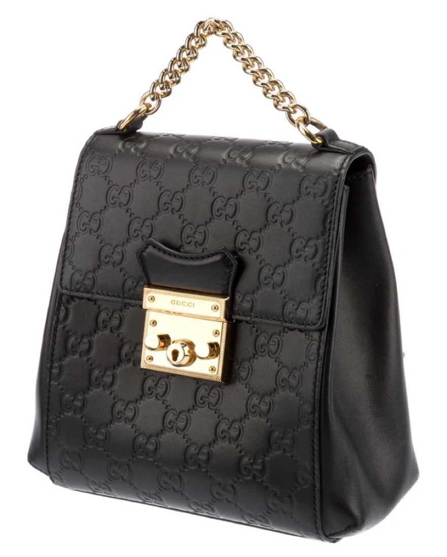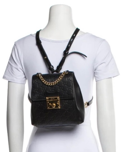 Gucci backpack in good condition, push lock closure in the front, dual adjustable shoulder straps, chain link handle, great size.