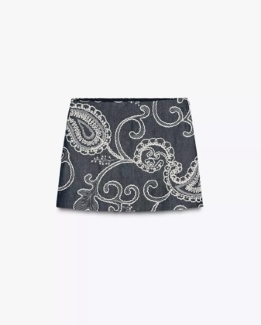 ZARA EMBROIDERED MINI SKIRT W/ SIDE ZIP