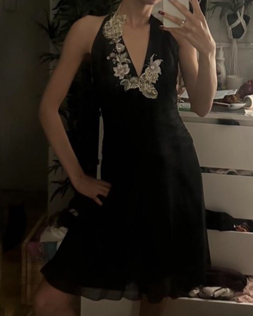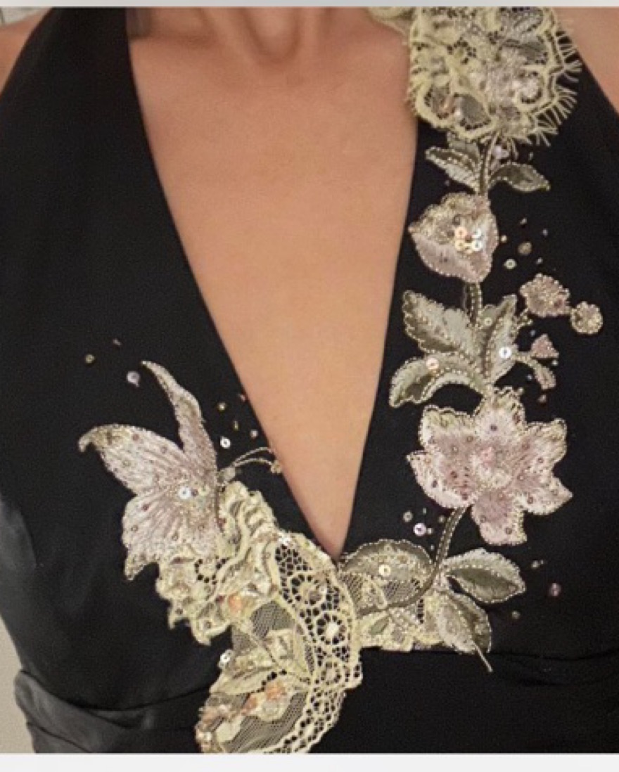 Papell Silk Embroidered Halter Dress