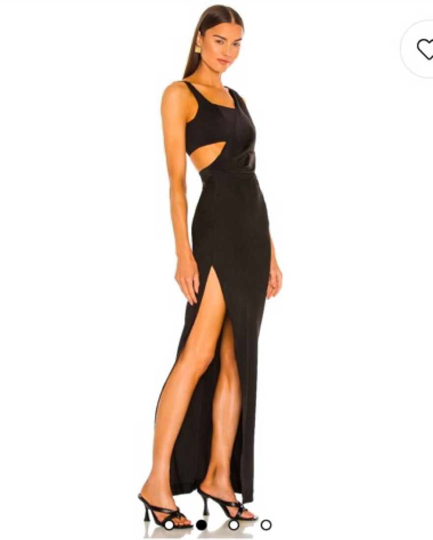 NBD from Revolve. This black maxi dress is perfect for a formal event. The cutouts give it a sexy yet elegant touch. Wore for a wedding. Perfect condition!