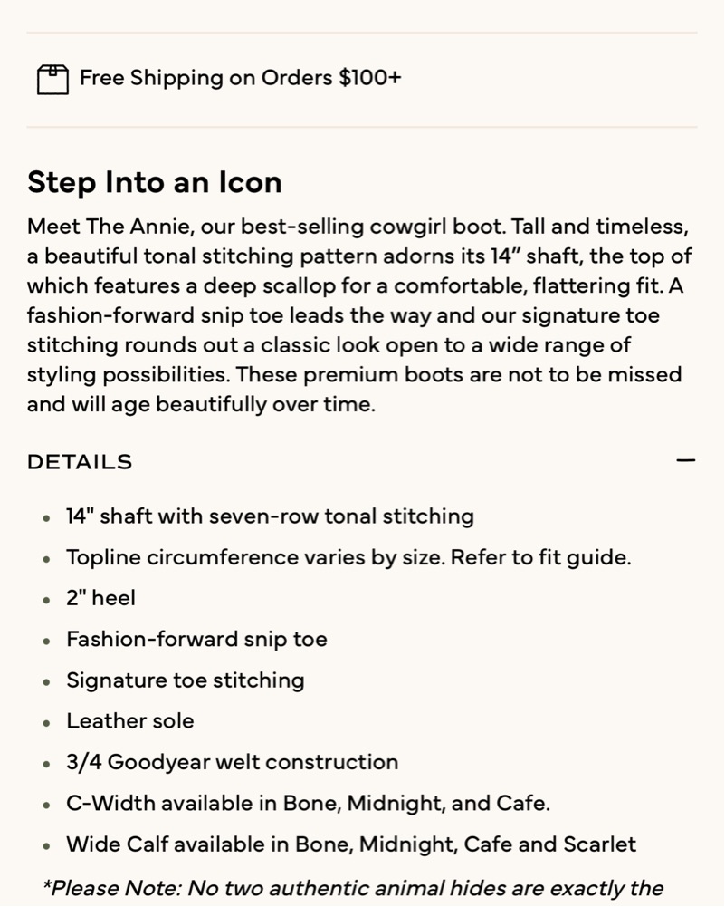 Step into timeless style with The Annie, our best-selling cowgirl boot. Pair this versatile piece with a flowing sundress or your favorite denim for a chic, Western-inspired look perfect for any occasion.