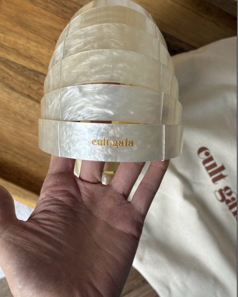 Cult Gaia Sirena Shell Clutch Bag Ivory. perfect for bridal or beach events. late & damage fees apply. please return with dust bag.