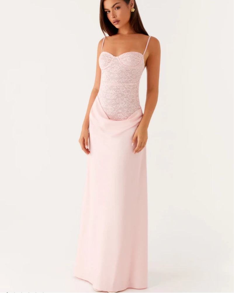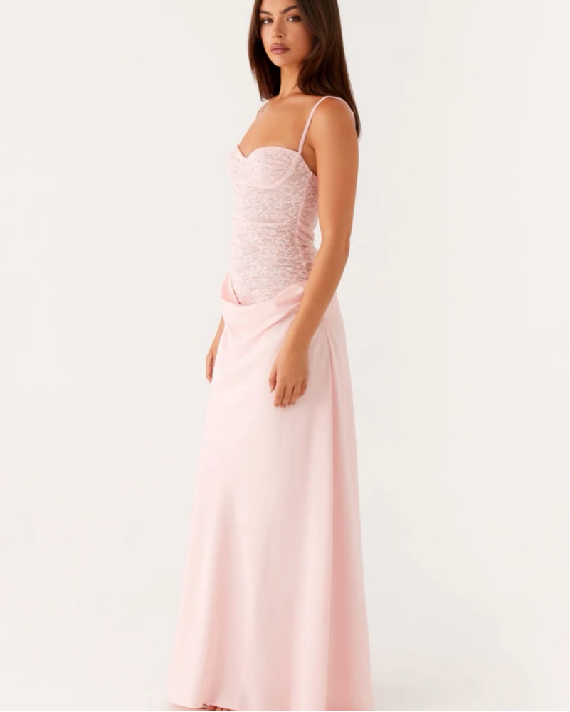 The Romy Maxi Dress is a stunning and structured piece, featuring underwired support for a flattering fit and gathered skirt detailing that adds texture and movement.