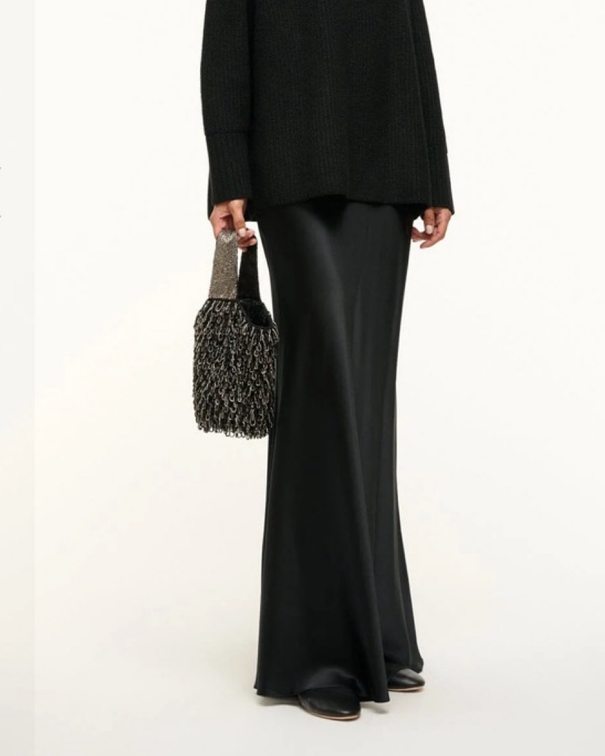 Staud statement bucket beaded bag. Perfect for a black tie occasion or to elevate your outfit.