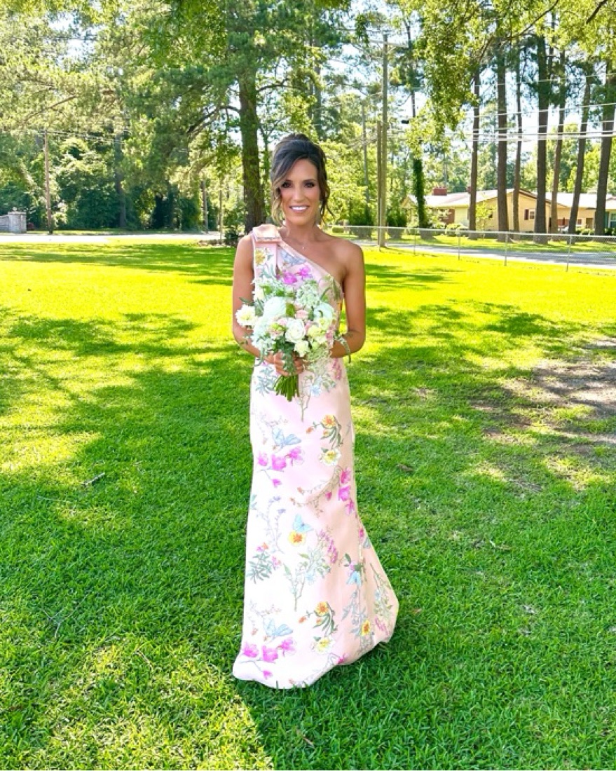 Worn once for wedding; it is a size 4 taken in to fit a size 2. Has been dry cleaned.