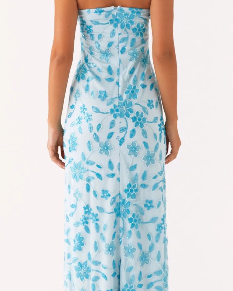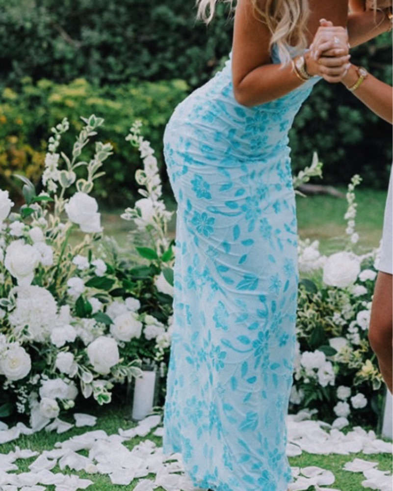 This gorgeous blue floral maxi dress is perfect for a summer wedding or any special occasion. The vibrant floral print and flowing silhouette create a romantic, feminine look. Worn once!