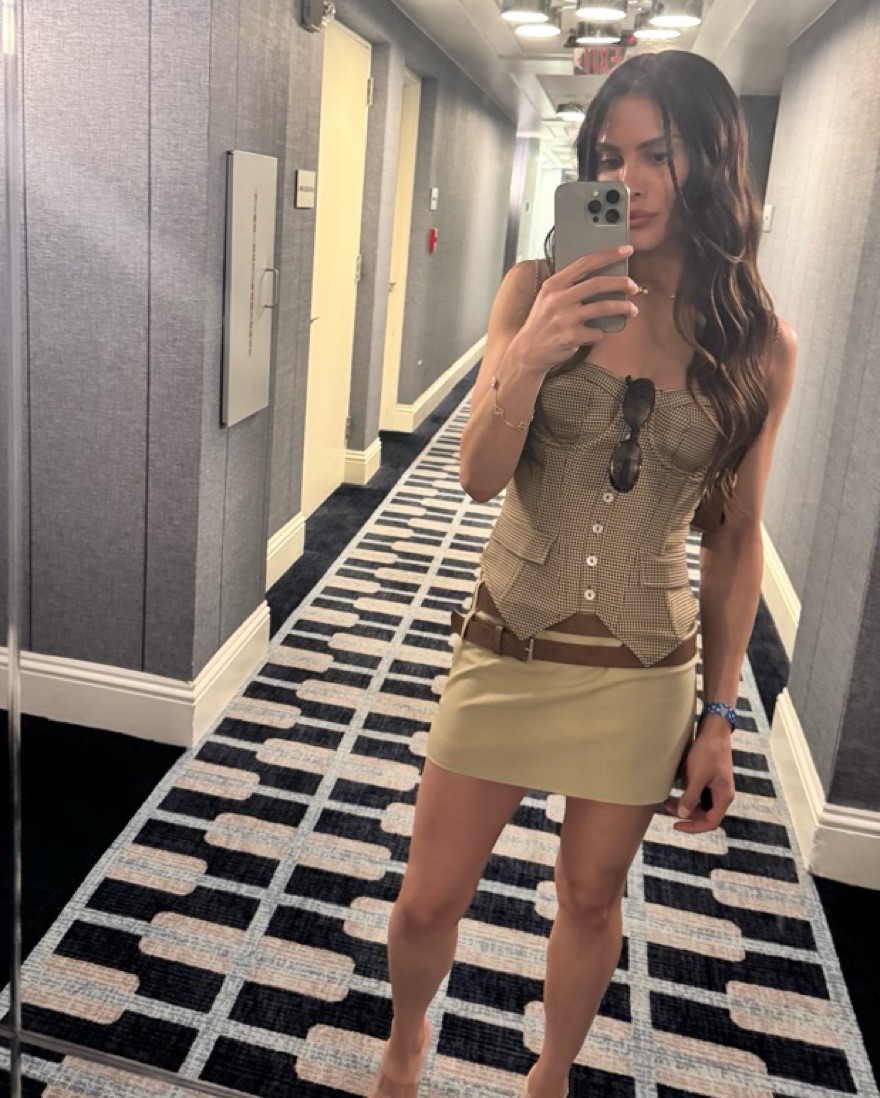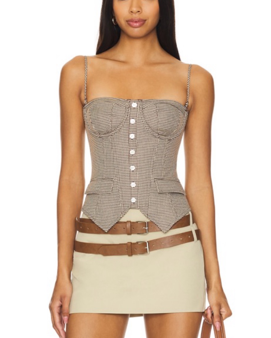 Brown and white corset top with brown corset tied back