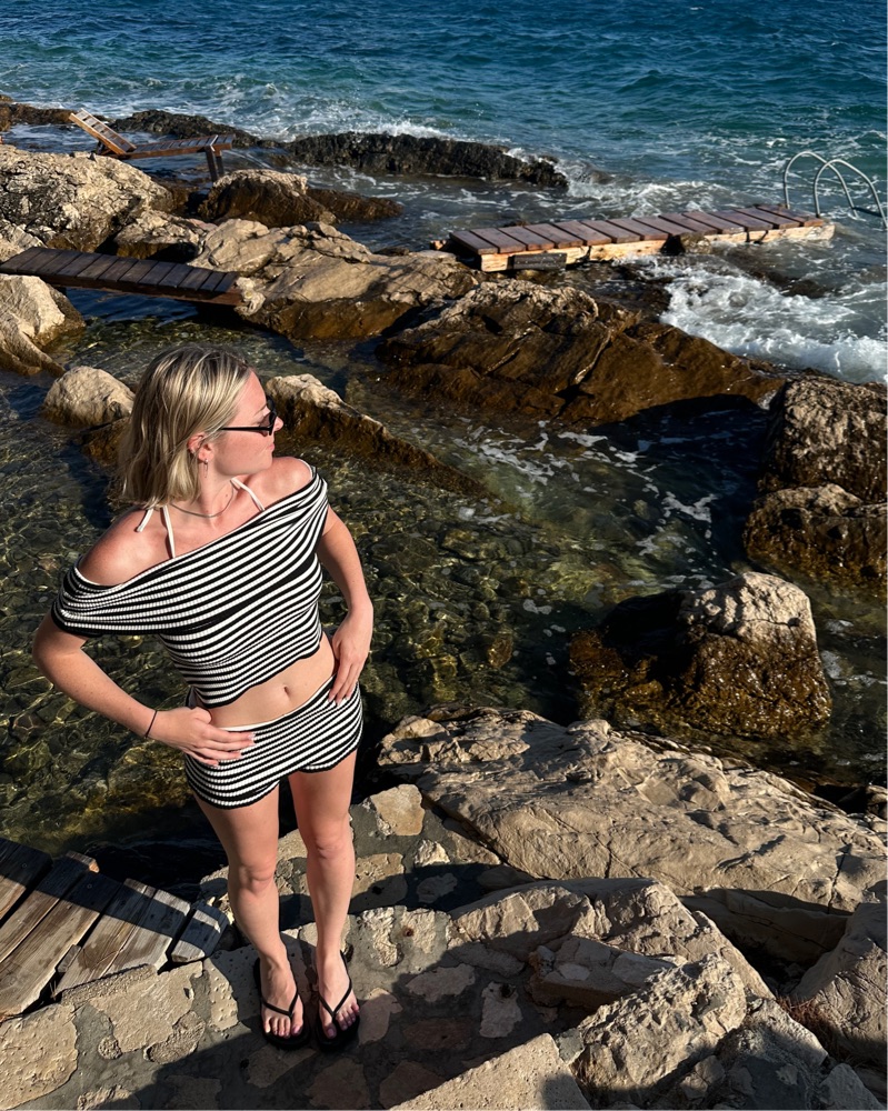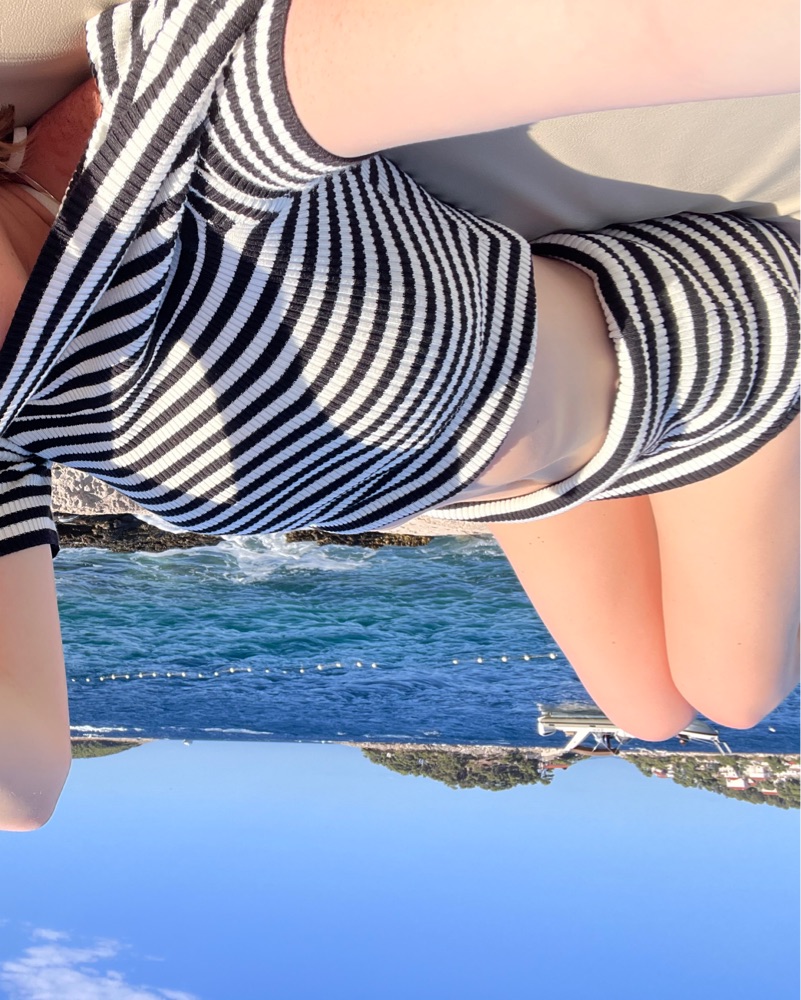 Frankies Bikinis striped Knit shorts and off the shoulder top Set