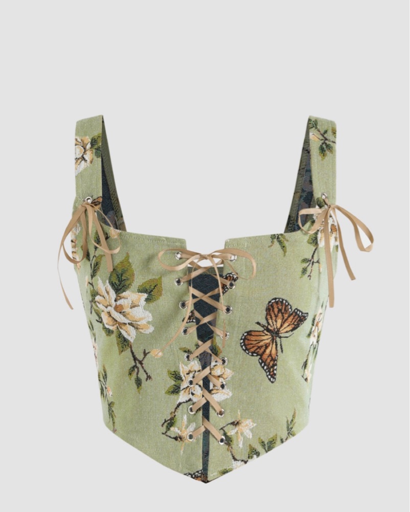Cider Green Butterfly Corset Top