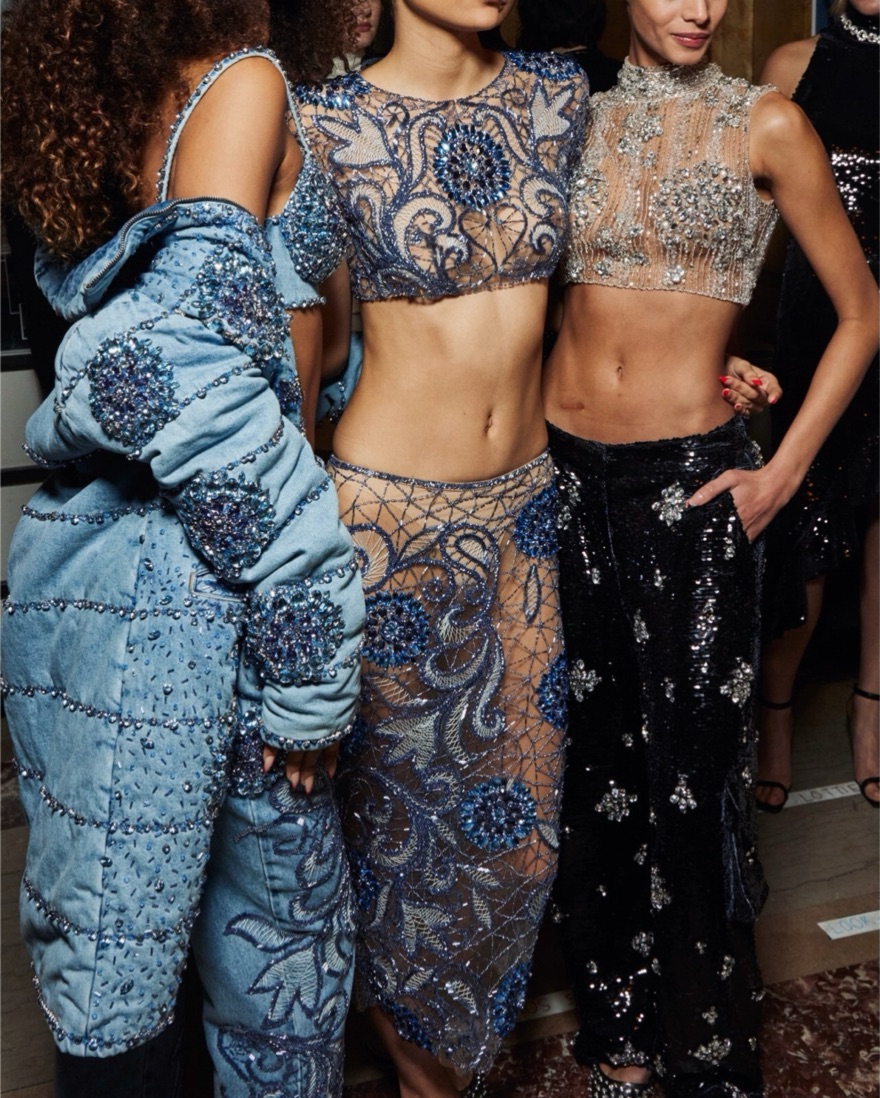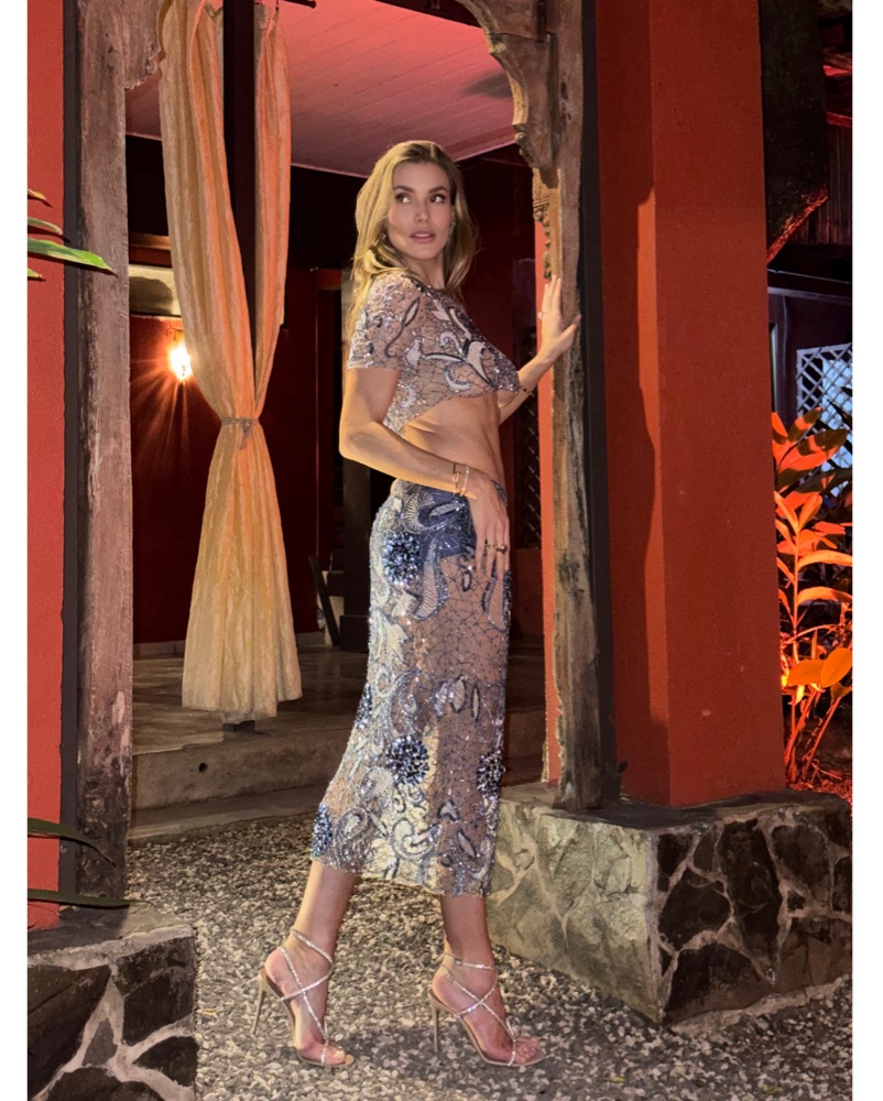 Embroidered midi skirt made of tulle, has covered elastic at the waist, invisible zipper at the center back. Matching crop top. The mermaid set of shimmering dreams. Beading is fragile, please handle with care. Birthday, party, peacock, vacation, resort, beach, engagement, bach, bachelorette