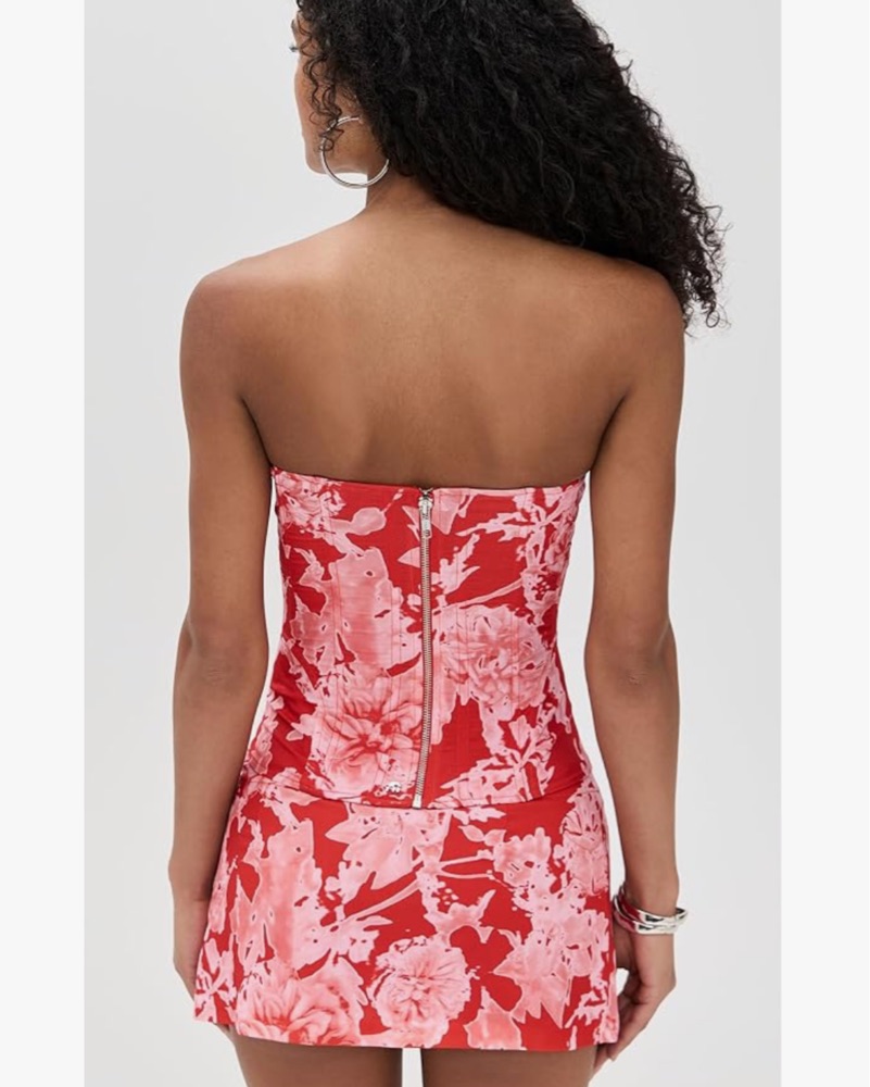 Miaou Women's Libra Corset strapless with mini slit skirt Miaou Women's Micro Mini Skirt siren damask floral