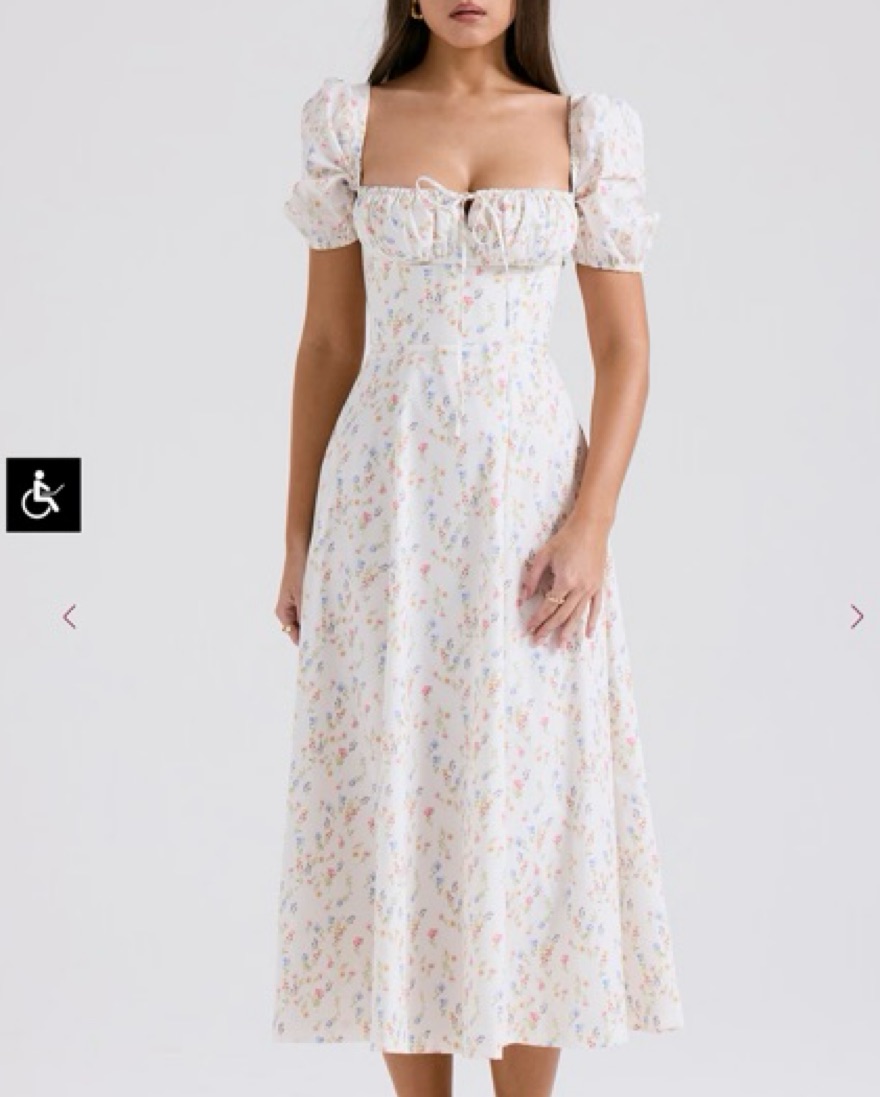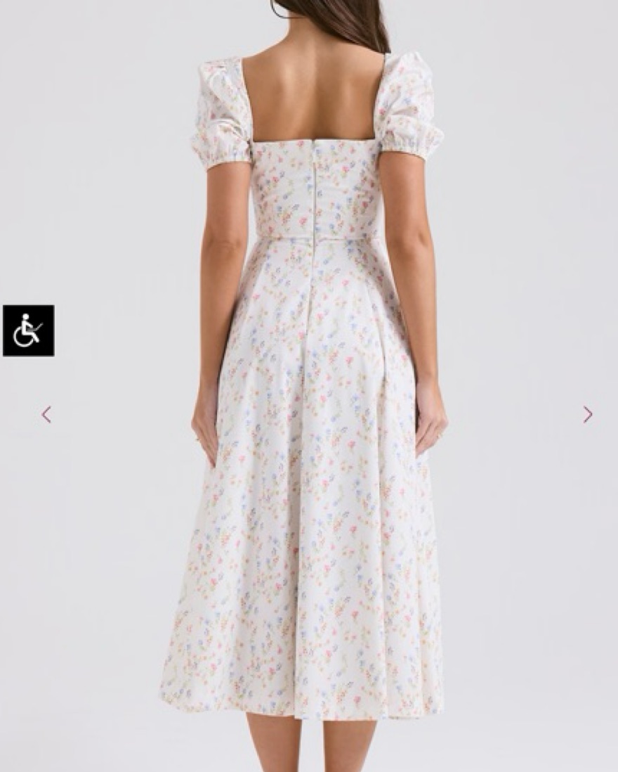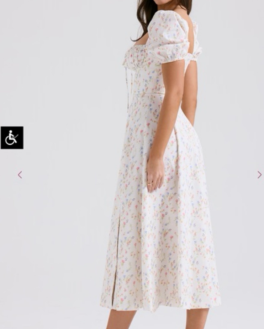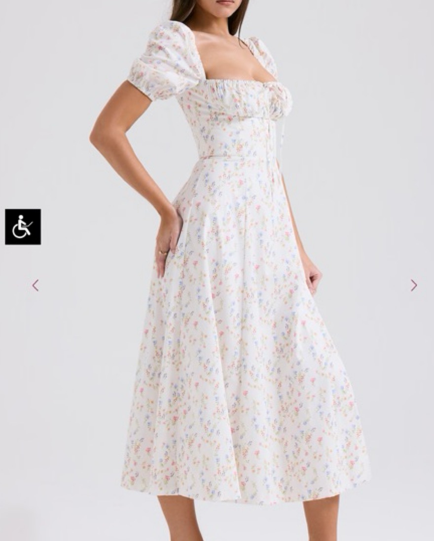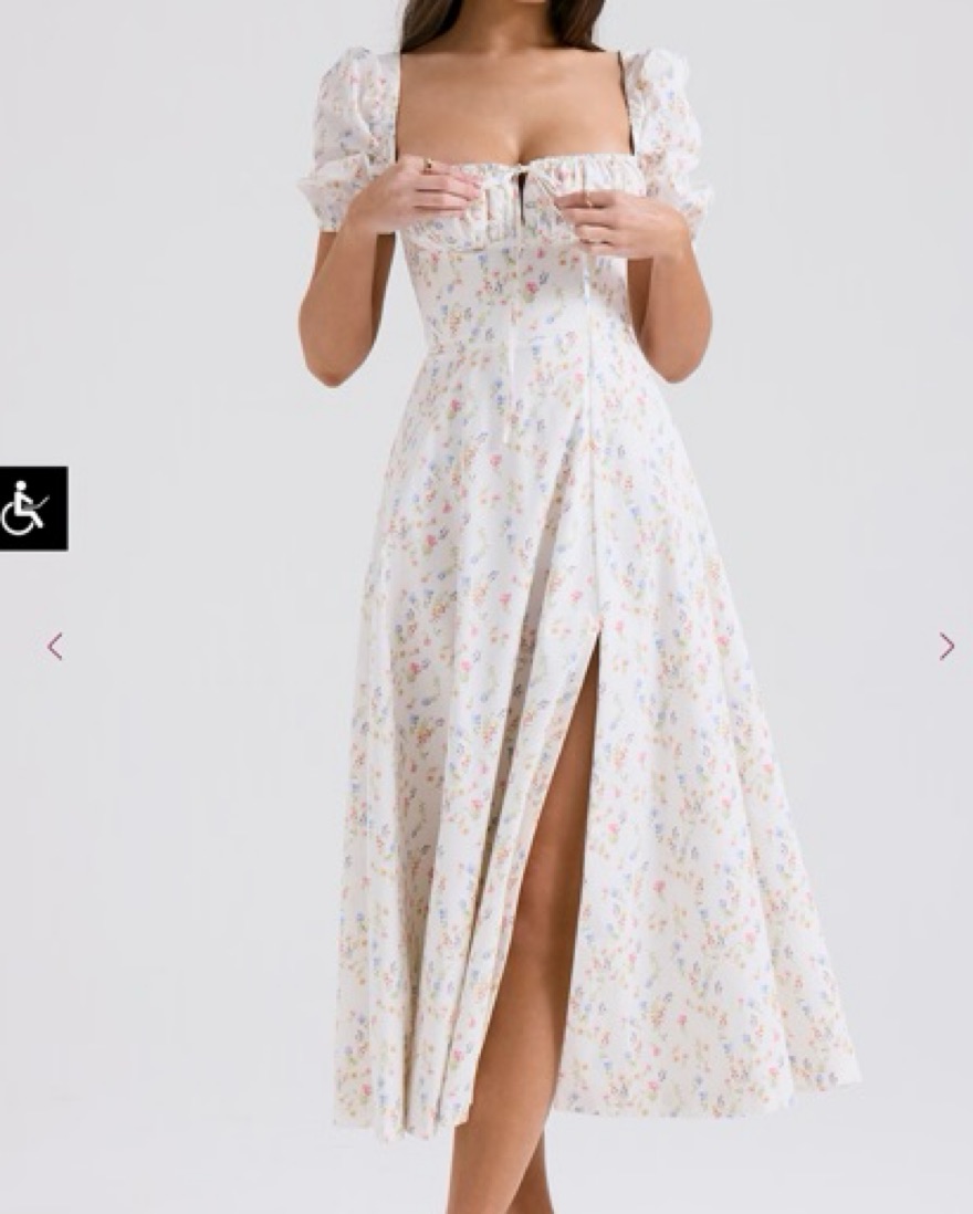 White Posy Print Cotton Puff Sleeve Midi Sundress, Brand New, in size Medium