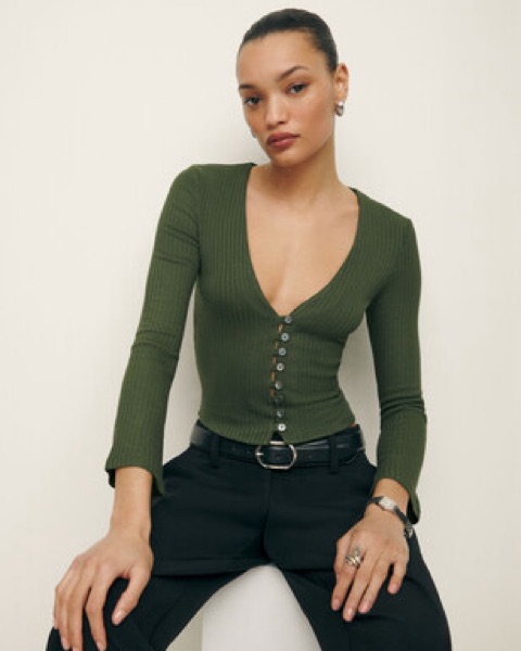 Reformation Green Geller Knit Top by Reformation - Pickle